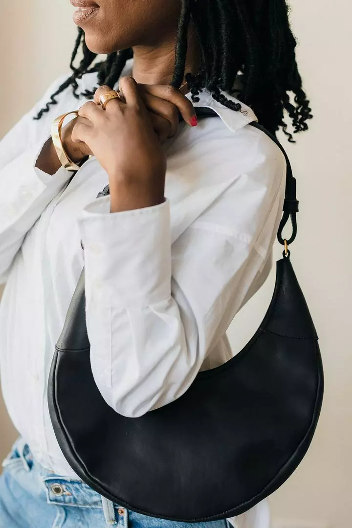 A classic round shoulder bag with beautiful details. Designed to be worn on your shoulder with two strap lengths to accommodate outerwear and comfort.
