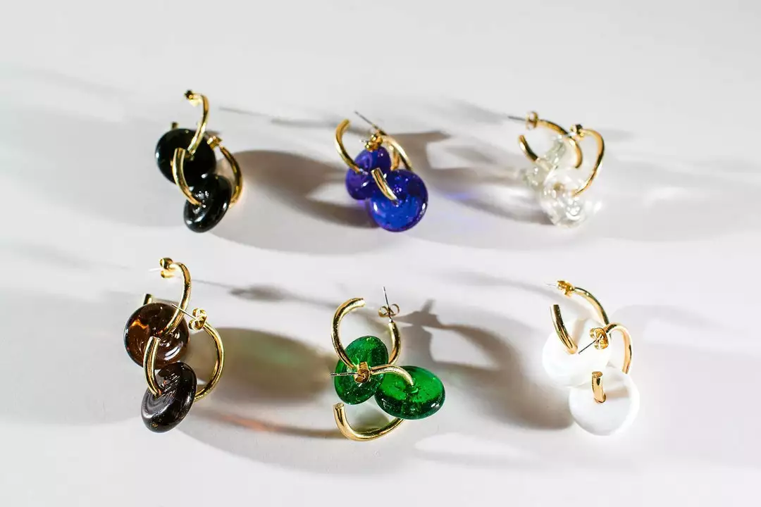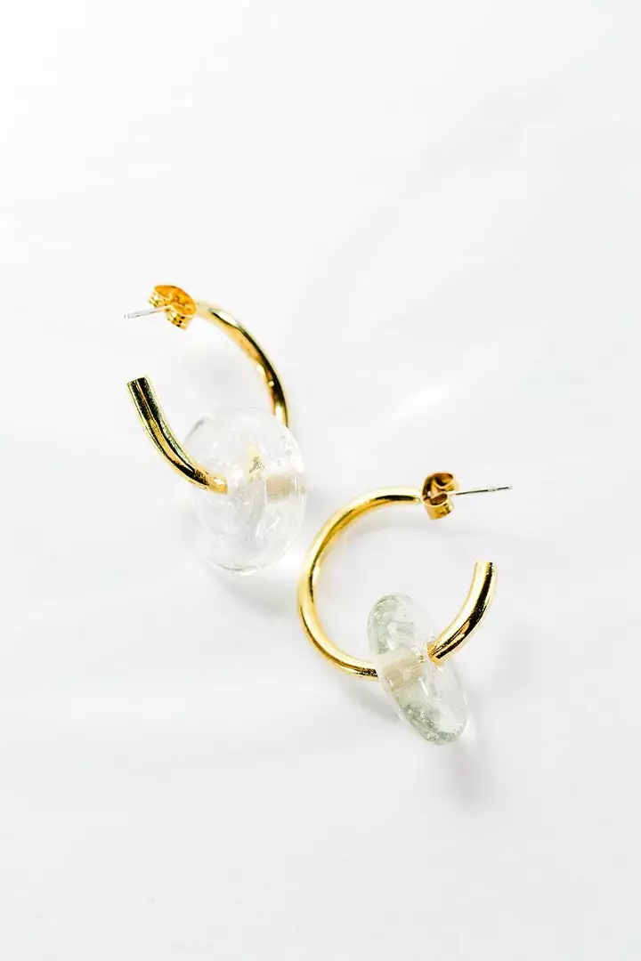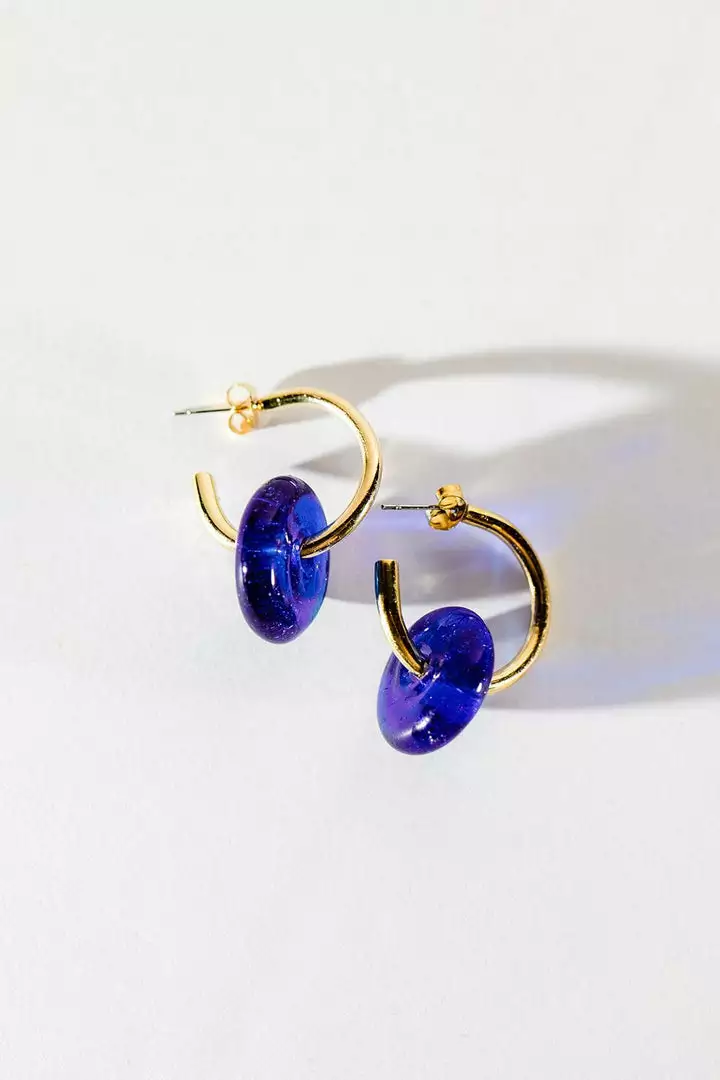 These versatile brass earrings can be worn on their own or with their removable disc-shaped glass bead. Made from recycled glass and brass by artisans earning a living wage.