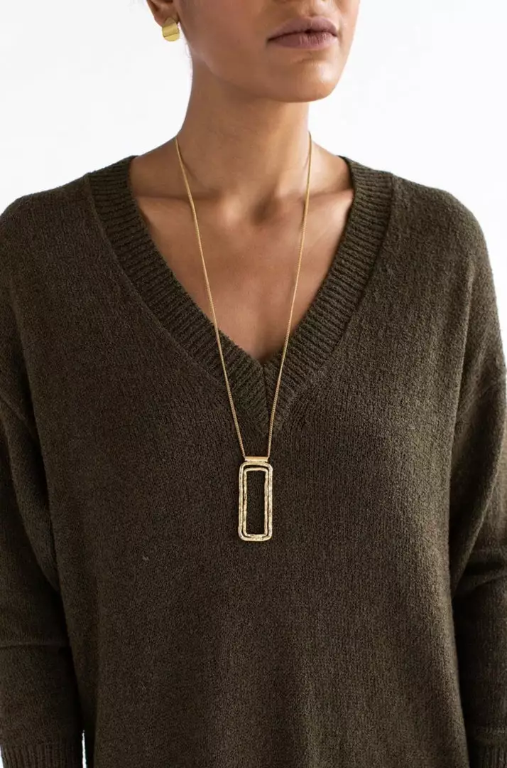 The Hannah Necklace features a feminine pendant silhouette with just enough edge and shine to take you from work to evening. Throw it on to add a sustainable statement to any outfit. Pair it with the matching Hannah Earrings for a complete look.