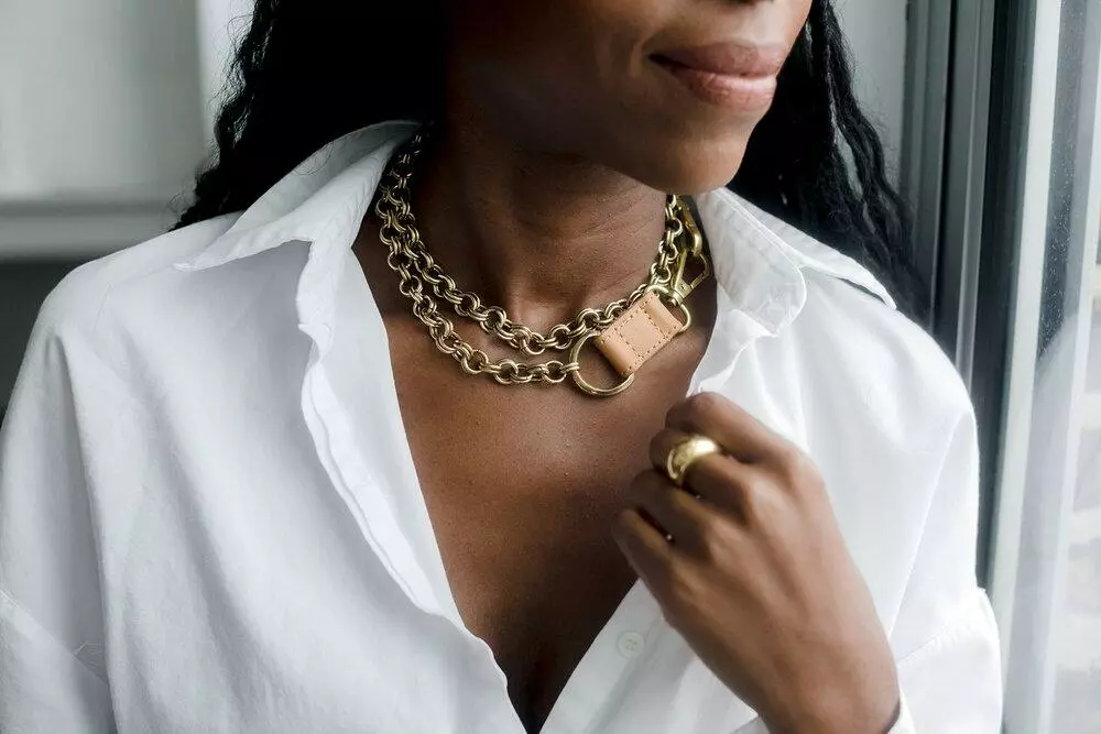 Finding beauty in unexpected places is what this season of life is all about. Brass mixed with tan leather gives this piece some unique texture. Wear it doubled under a collared shirt or long with a blouse or sweater. It’s a piece that will never go out of style that you’ll love for years to come.