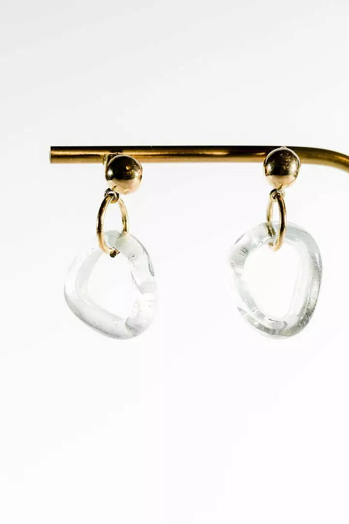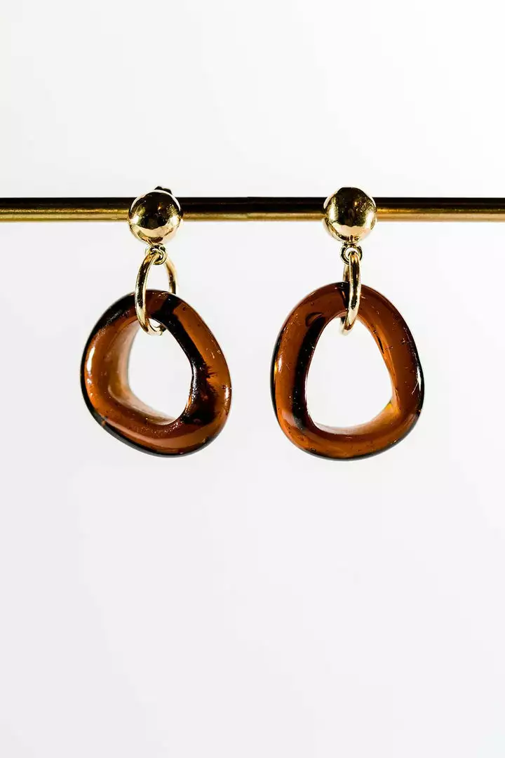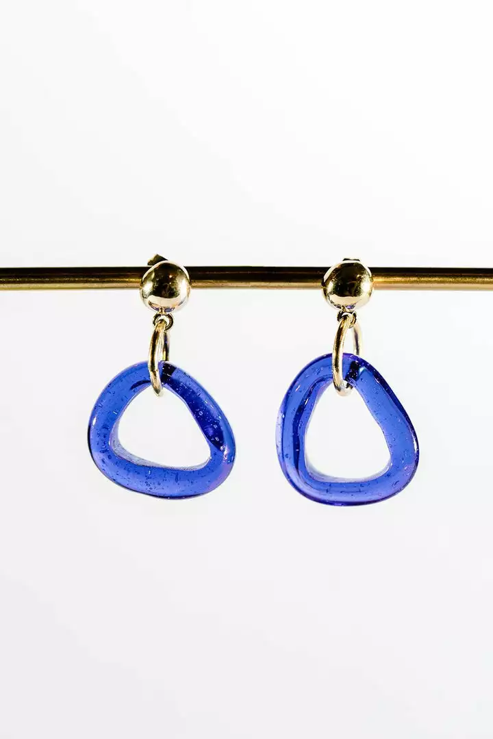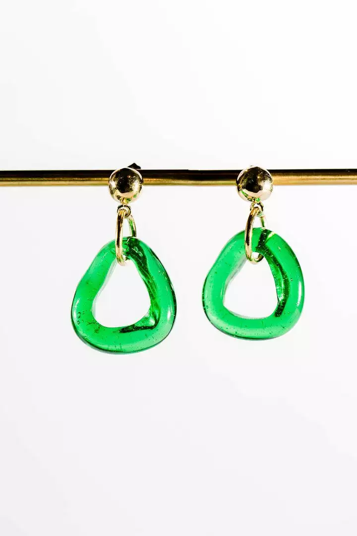 These organically shaped earrings resemble the naturally shaped pieces of sea glass you might find on the beach – no single earring is exactly alike. Available in six colors.