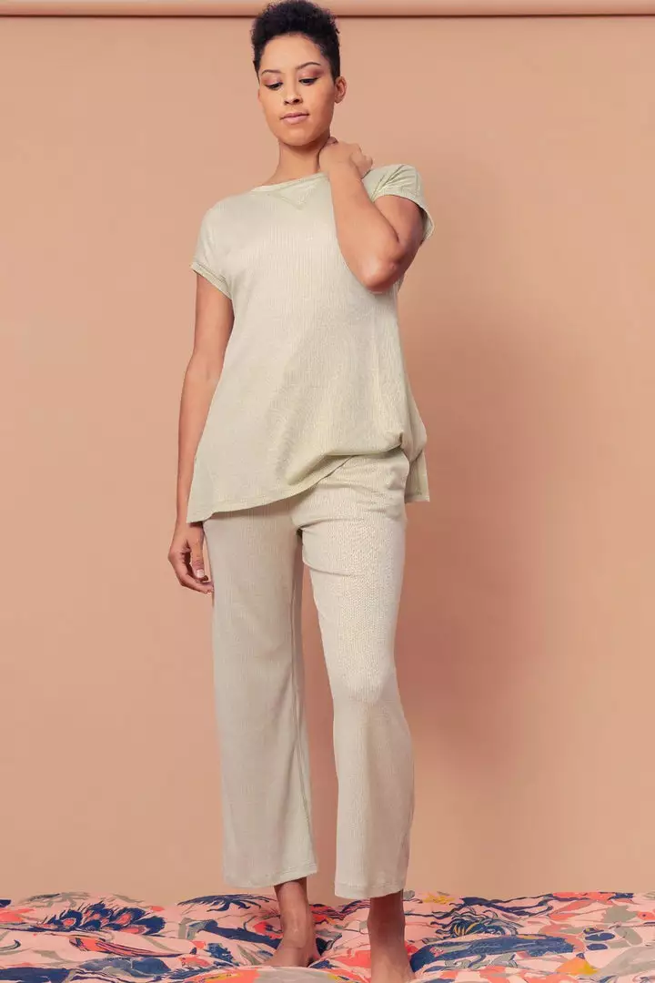 The Ronnie Lounge Bottoms in Mint are made from a silky soft rib knit Tencel that is Lenzing certified modal.