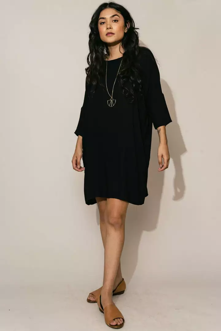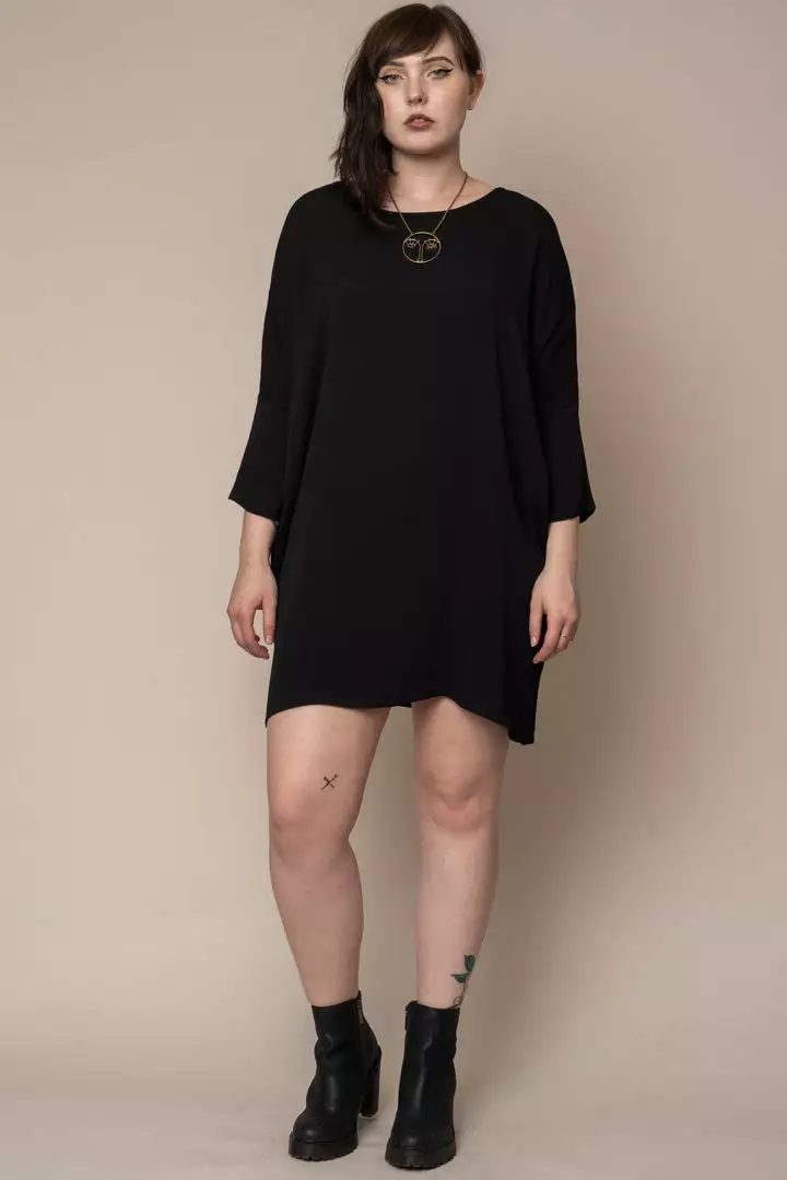 The Batwing Dress is a versatile and chic everyday dress made from deadstock material.