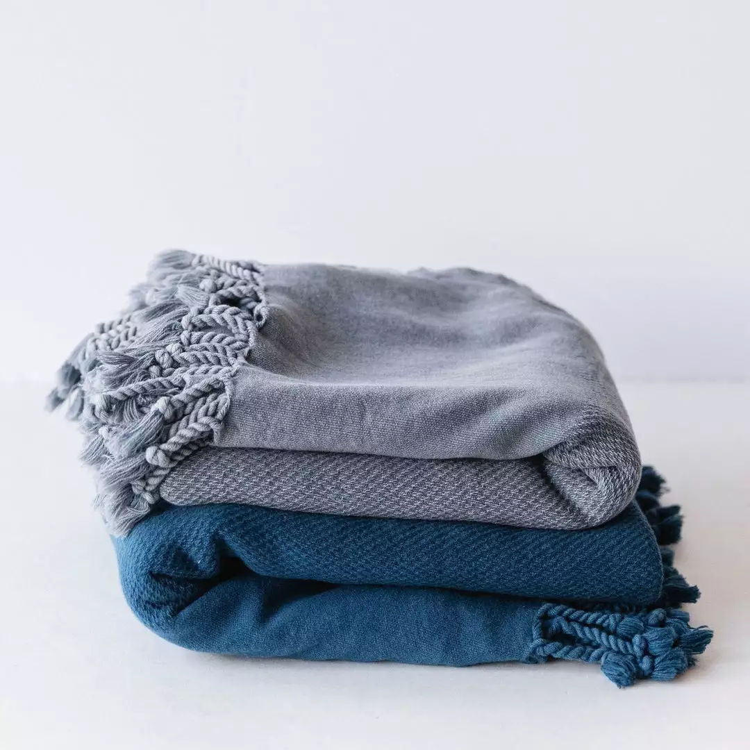 The Arete throw towel can be used both in the home, beach, or as a scarf! It’s beautiful textured pattern adds layer and detail to any space.