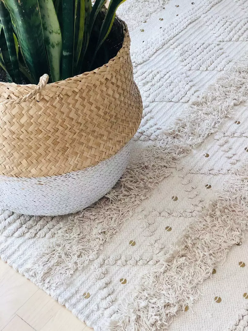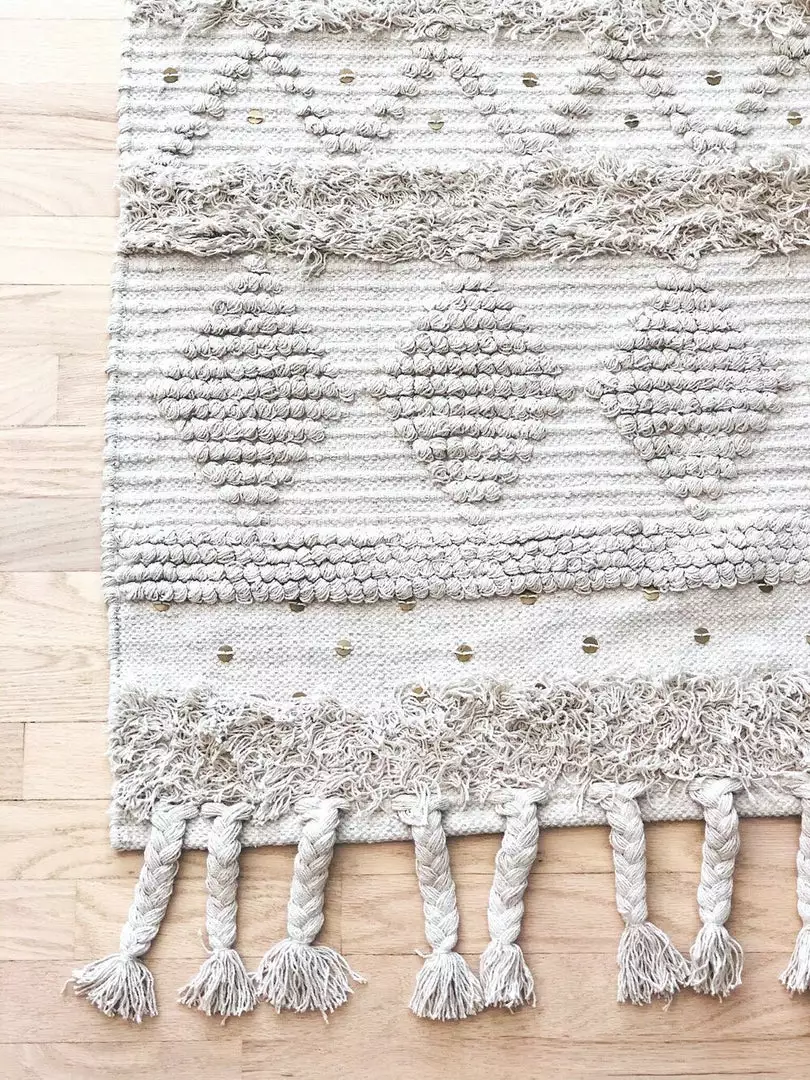 Inspired by ikat textiles, the Cotton Shaggy Rug balances modern design with traditional motifs. From the hand-tied tassels to the unique pattern, this rug is perfect as a focal piece on the floor, but also looks stunning hung on a wall.