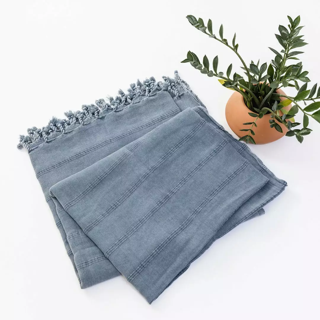The Kurios is an ultra-soft, stonewashed Turkish towel and blanket with a vintage, lived in feel. The lightweight and absorbent Turkish cotton makes the Kurios ideal for use in humid climates both as a blanket and as a towel. The Kurios was handwoven in Turkey in a fair trade environment, and is sure to fit in with your sustainable home decor.