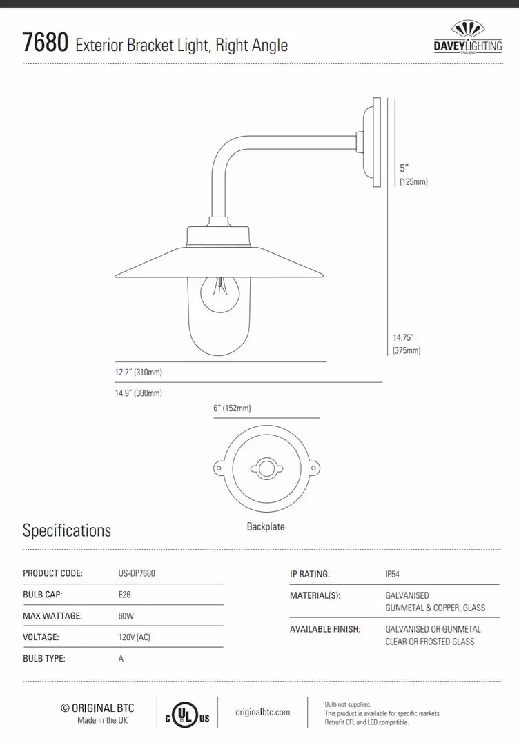 A classic, continental style well glass fitting light with screw glass. This wall light has a clean design and suits both traditional and modern locations. Davey Lighting has roots dating back to the shipyards of nineteenth century London and in 2010 the company was purchased by Original BTC. Davey Lighting now stands as one of the worlds best resources for quality outdoor lighting for residential and commercial properties, combining industrial design, traditional craftsmanship and the finest raw materials.