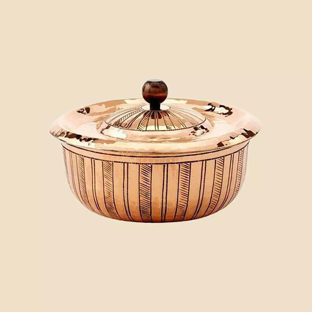 • Crafted from 100% recycled and hammered copper, lined with tin