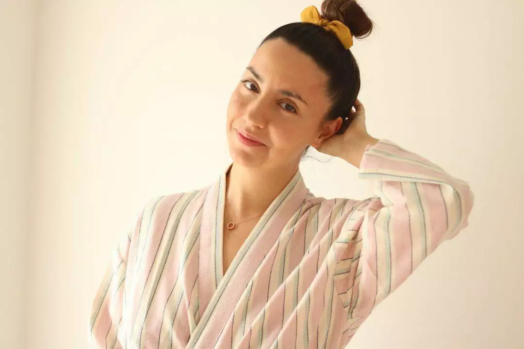 The pink Lily Turkish Robe is a modern spin on the classic Turkish towel that makes a lightweight bathrobe or a luxurious garment to wear while relaxing at home.