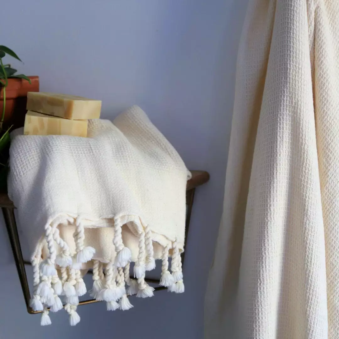 The Waffle Weave Turkish Towel is the most absorbent and luxurious towel you can find. Made with Turkish cotton, it is lightweight and quick-drying, making it ideal for humid environments. Each is handwoven using traditional Turkish weaving techniques.