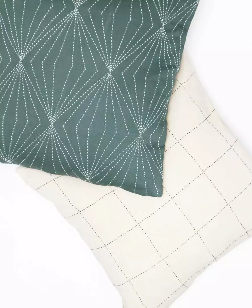 This decorative pillow features contemporary prism-inspired geometric stitchwork. Toss it on a bed or sofa to add a touch of modern dimension to your home decor.
