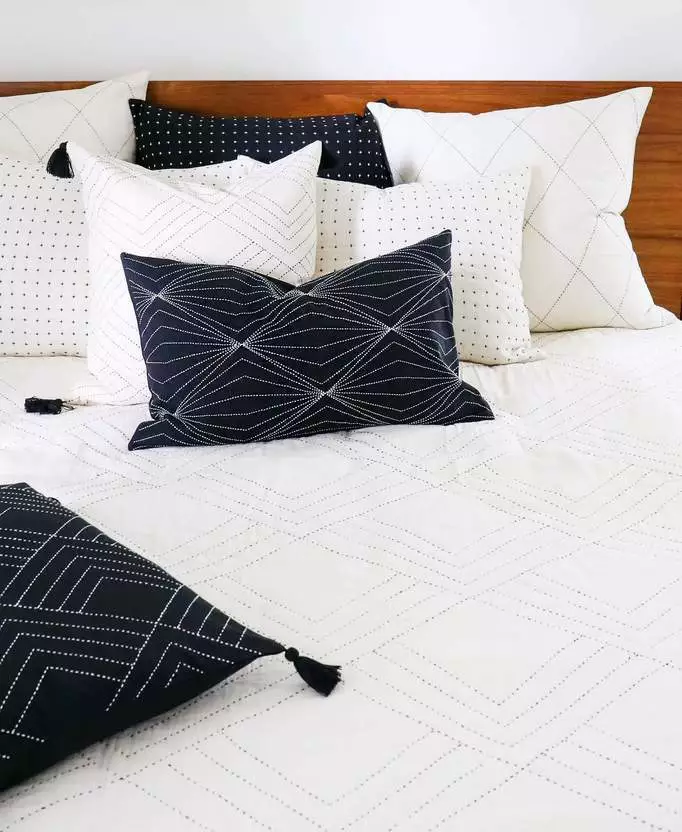 This luxurious cotton bedding features a stunning geometric embroidery pattern. The buttery soft feel of this quilt will add warmth and texture to your bedroom. Drape it on your bed to add artistic, modern flare in your home.