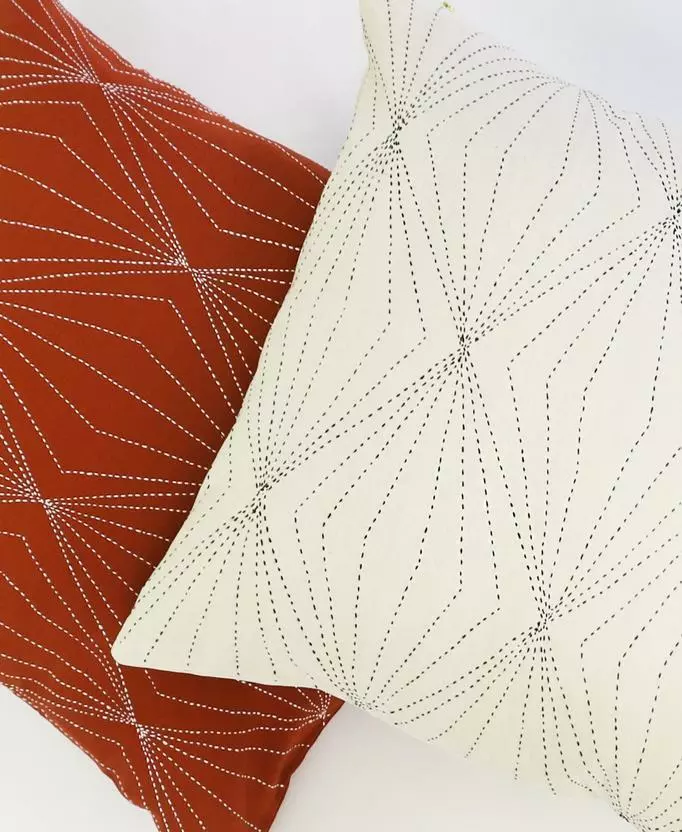 This decorative pillow features contemporary prism-inspired geometric stitchwork. Toss it on a bed or sofa to add a touch of modern dimension to your home decor.