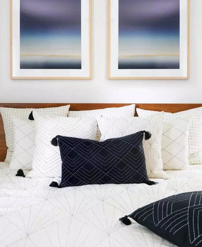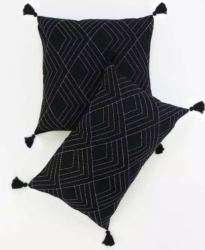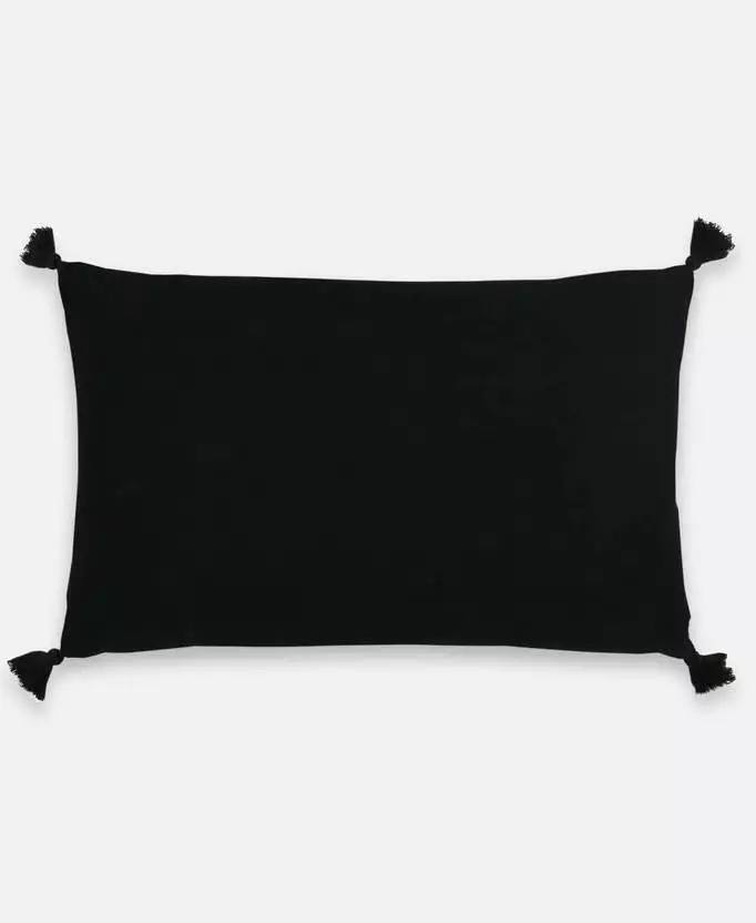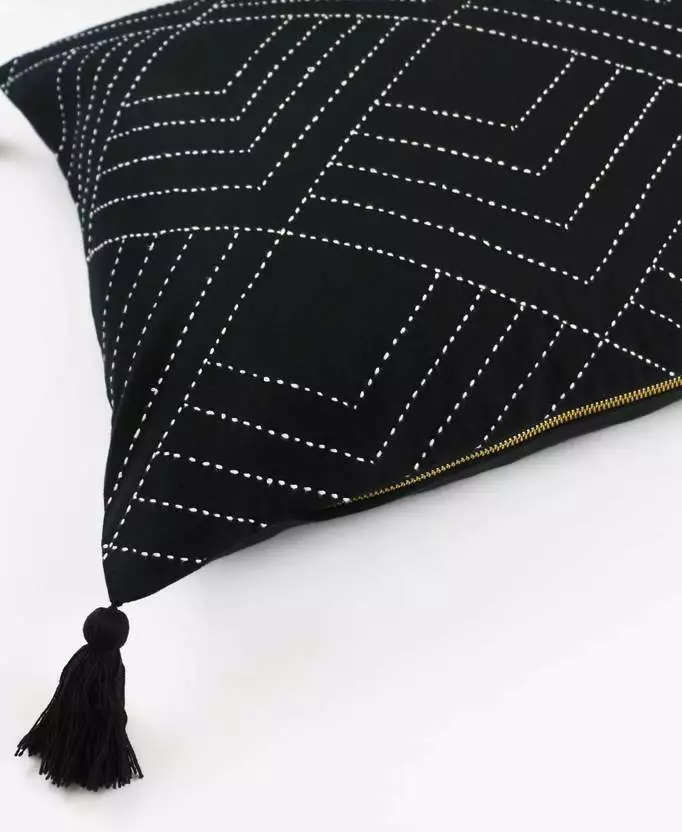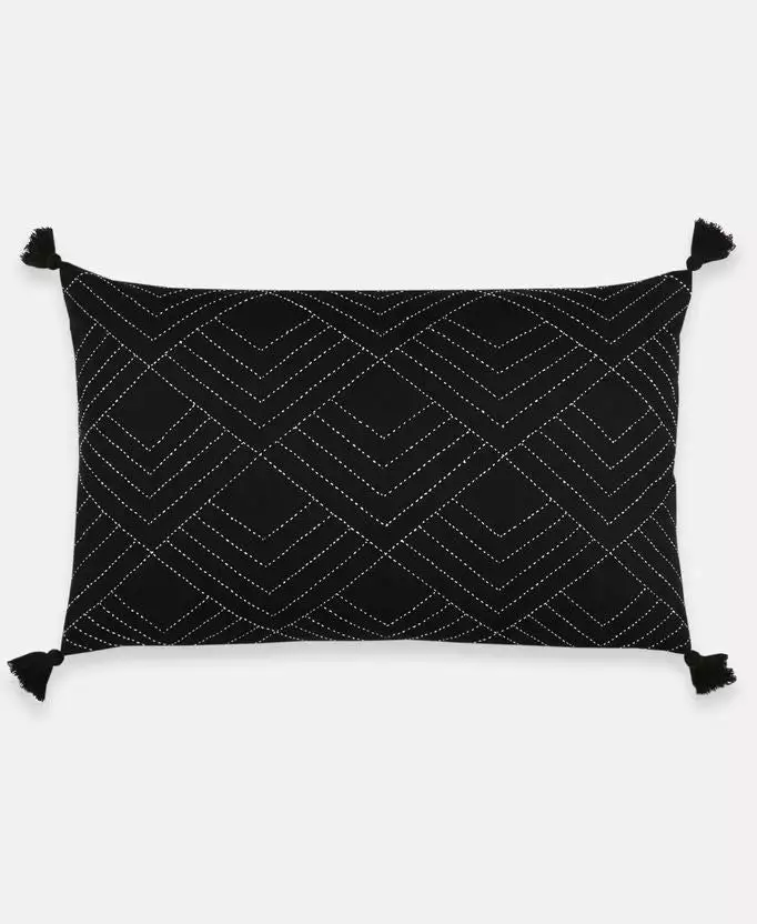 Rich with artistic sensibility, this lumbar pillow features contrasting geometric stitching and charming tassels. Mix and match sizes, colors and patterns to create a monochromatic combination, perfect for any modernist home.