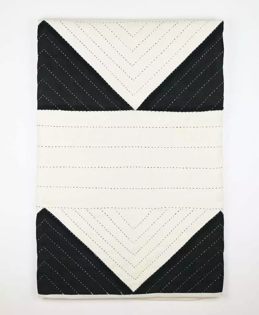 Introduce a feel of modern luxury to your home with the triangle quilted throw in charcoal black. Showcasing the talent of the artisans, the geometric hand stitching lends texture and personality to this statement quilt. Take your home decor to the next level by adding this hand quilted blanket to your bedroom, guest room or living space. The small version is perfect for nurseries and use as a wall hanging.