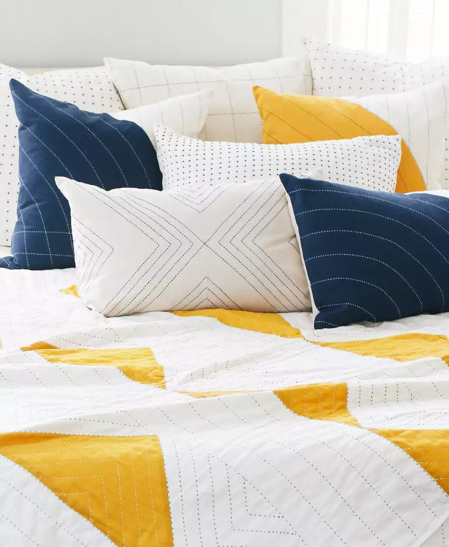 Introduce a feel of modern luxury to your home with the triangle quilted throw in charcoal black. Showcasing the talent of the artisans, the geometric hand stitching lends texture and personality to this statement quilt. Take your home decor to the next level by adding this hand quilted blanket to your bedroom, guest room or living space. The small version is perfect for a nursery or as a wall hanging.
