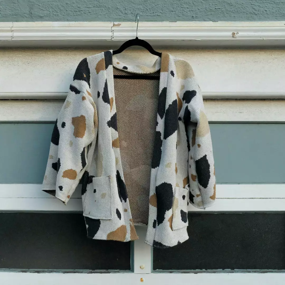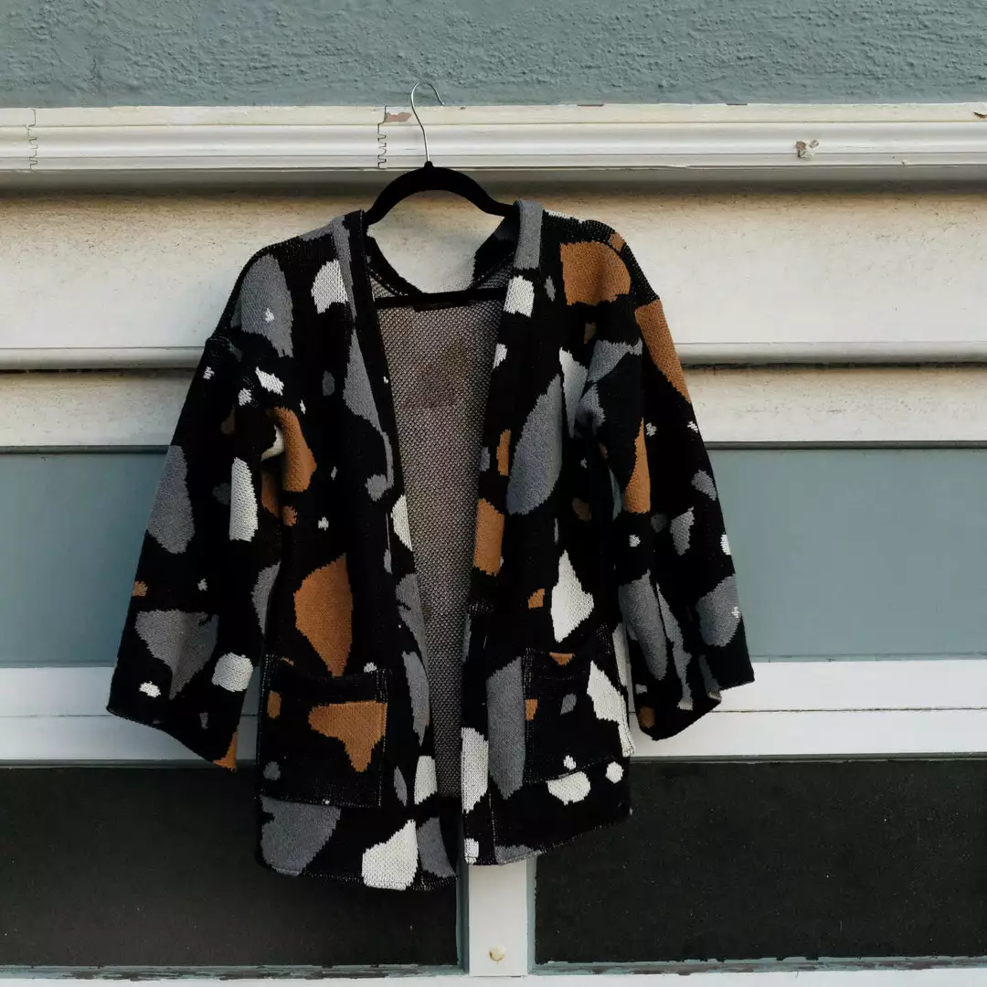 These coats are made from a heavy upcycled cotton knit. Inspired by the terrazzo ceramics, this coat makes a perfect statement layering piece.
