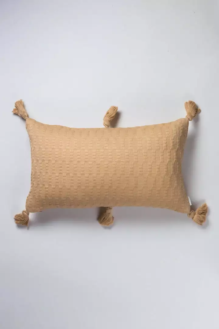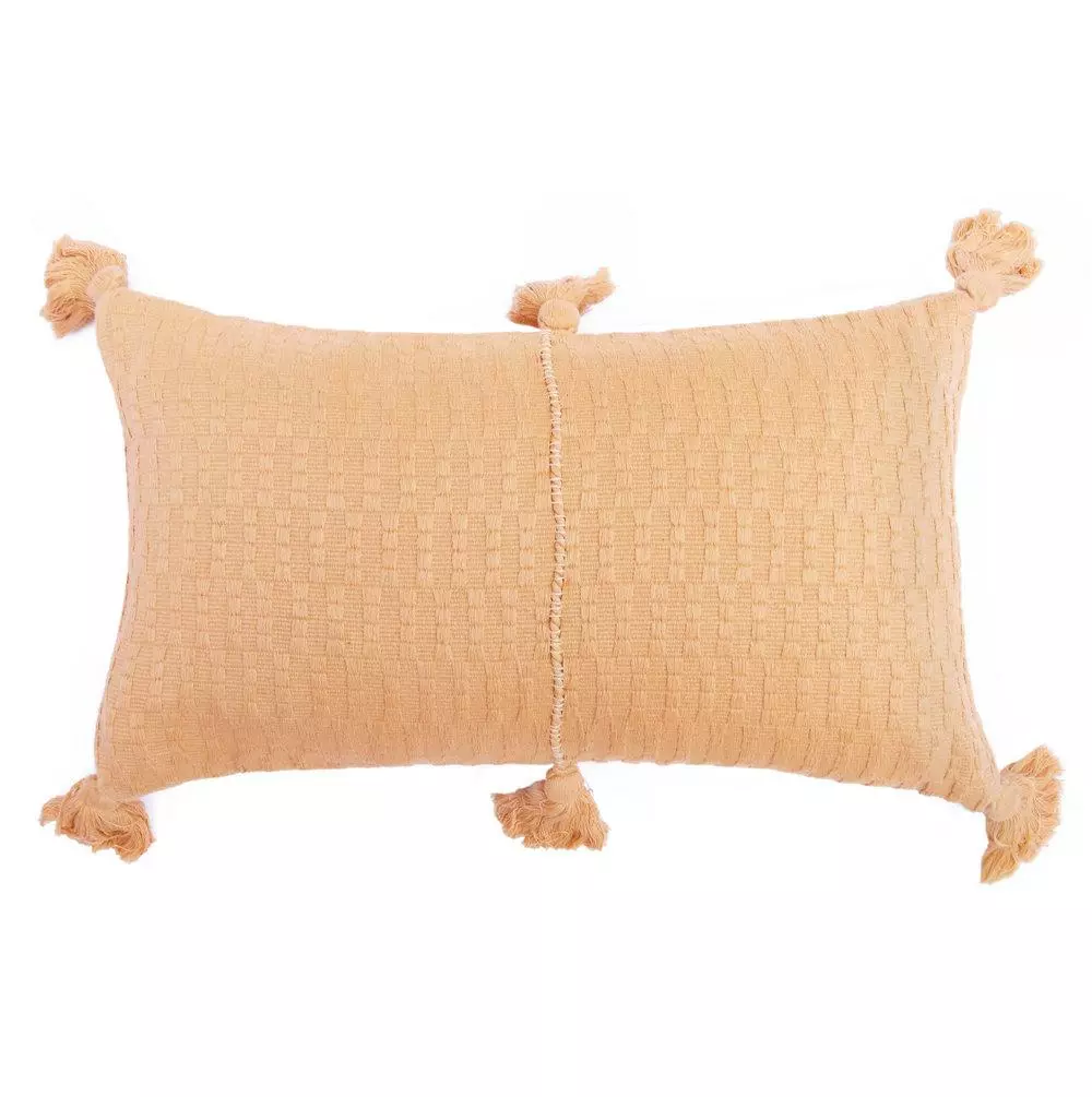 This blush pillow is inspired by traditional textiles from Almolonga, Guatemala. The cotton used to make this pillow was handwoven by artisans using a back-strap loom.
