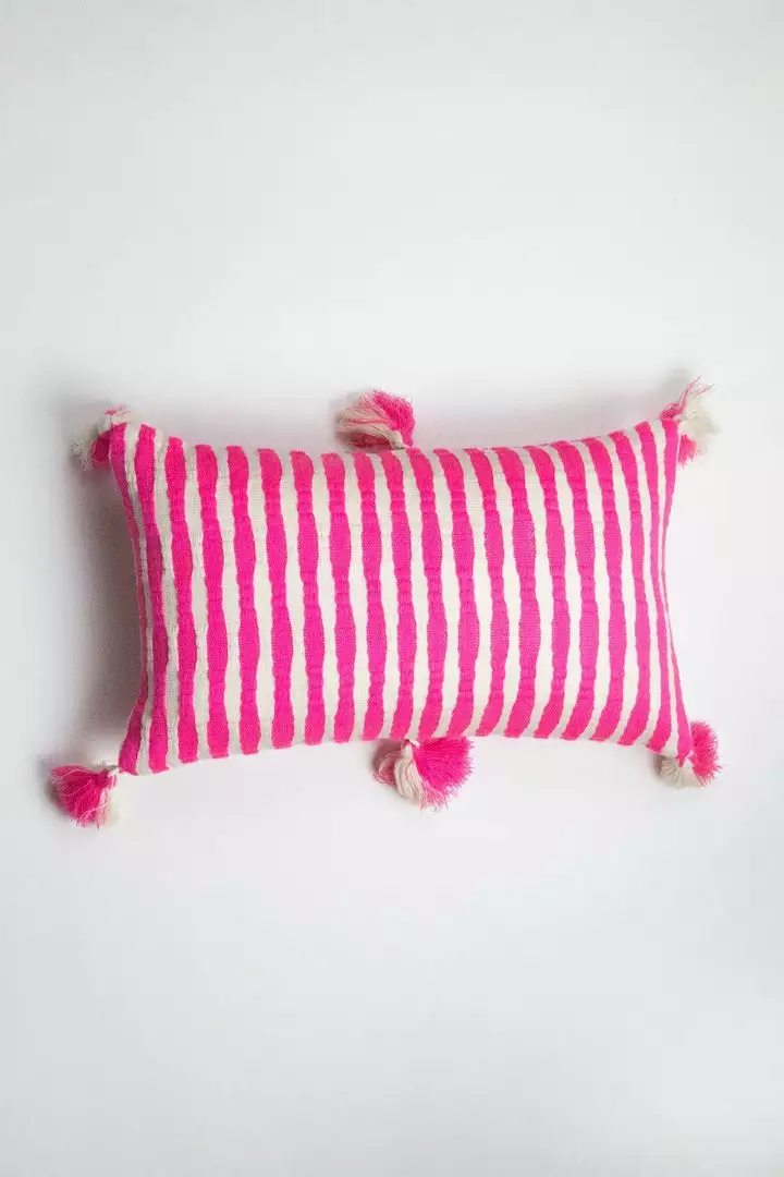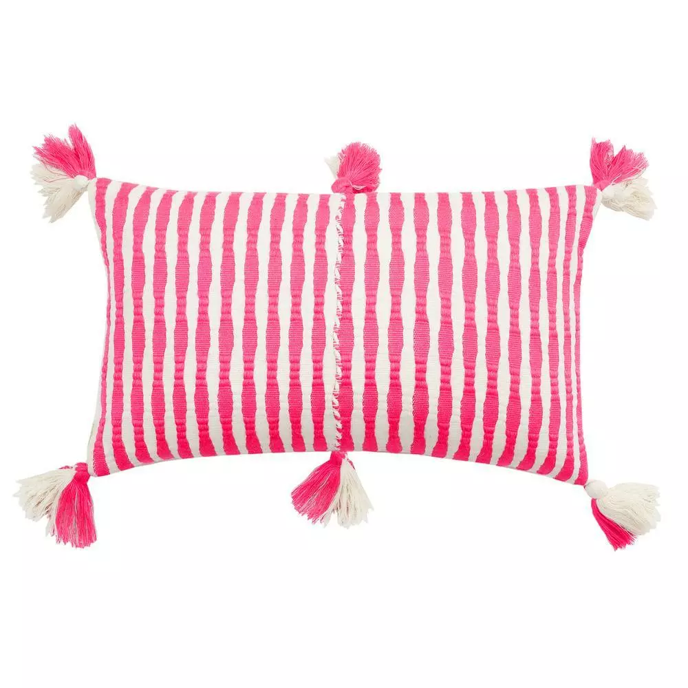 Add a punch of color to any room with this bold neon pink striped pillow. It is a true neon! The handwoven textile was made in partnership with an artisan group just outside of Antigua, Guatemala.