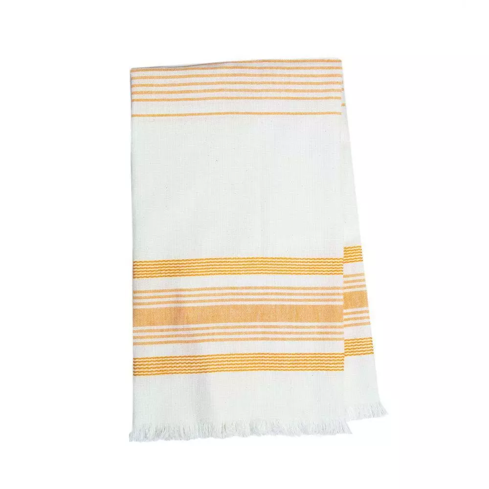Add a fresh splash of color to your kitchen with this white and orange handwoven kitchen towel made by artisans in Guatemala using traditional weaving techniques.