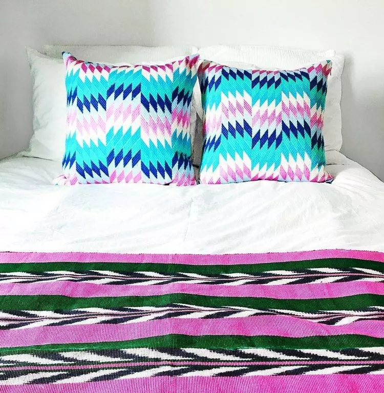 This blanket is handwoven in a Fair Trade environment in the village of Totonicapan, Guatemala. Complete the set with the matching lumbar pillow and throw pillow.