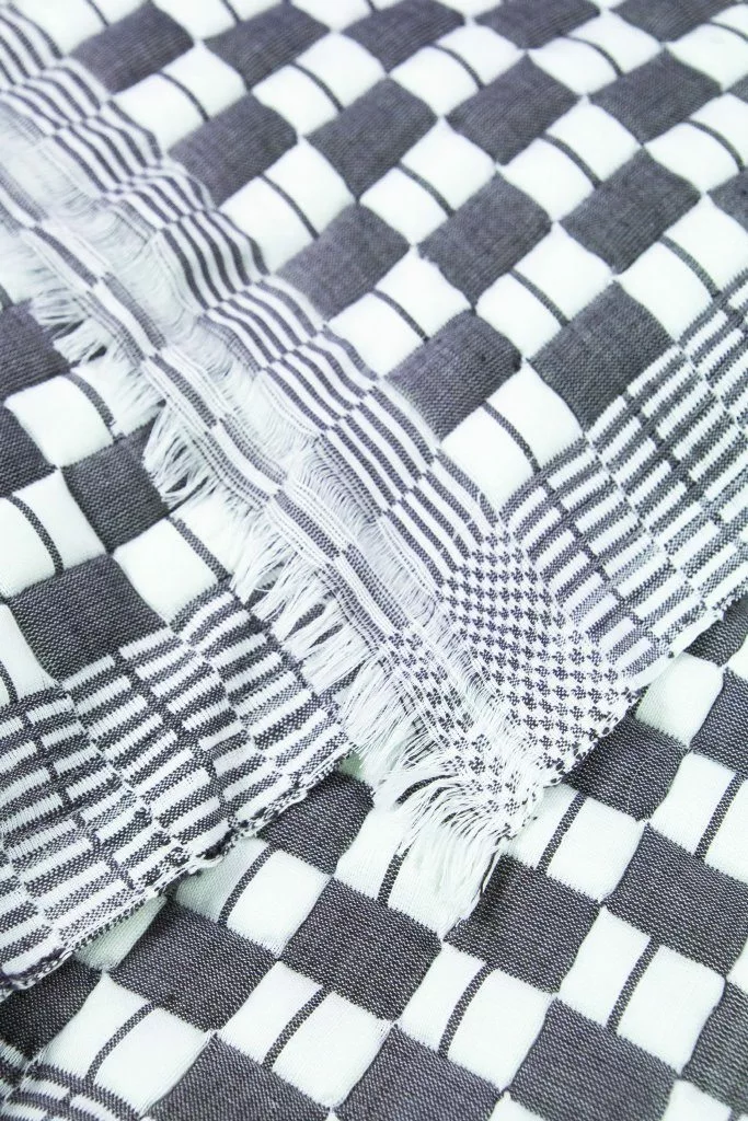 A soft black and white handwoven quilted blanket from Gujarat India to add pattern and texture to any spot in your home. Now only three families in India make this specialized weaving style that dates back to the 1860s.