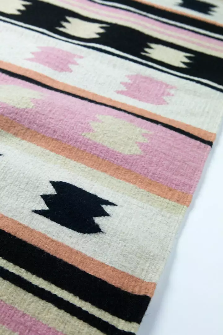 This flat weave, handwoven rug is made in Teotitlán del Valle, a small rug-making town about 40 minutes outside of Oaxaca City, where techniques, foot looms, and the passion for rug-making has been passed down through generations. Each rug is made one by one, woven row by row, with hand-dyed locally grown wool.