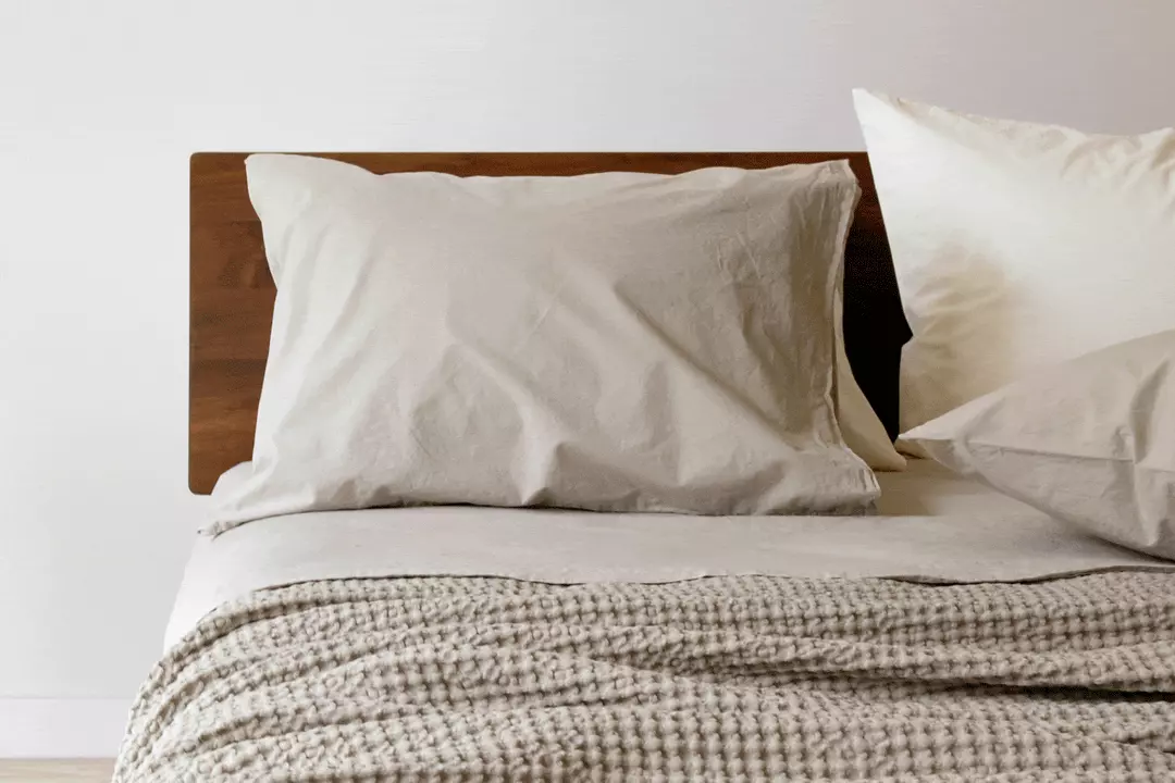 Washed, dyed organic cotton percale sheets. Anton is a soft-to-the-touch, crisp, classic percale weave, dyed in small batches and pre-washed for an easy, sink-into-bed modern style. Medium weight, breathable, fresh and unstudied. A smooth, non-fussy collection of natural organic cotton bedding, cool, soothing and relaxed to the touch. Fitted sheet has an elastic top and bottom and a 14″ drop.
