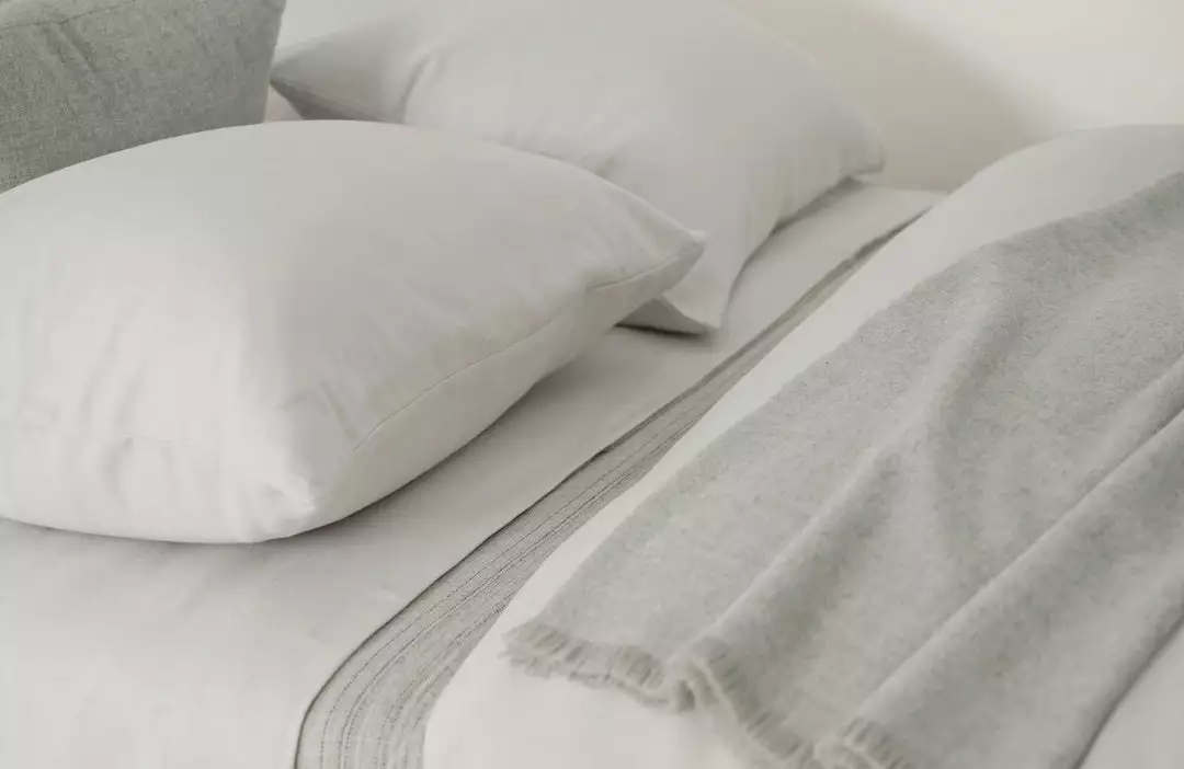The Emmet Pillowcase is soft and thick with a barely there herringbone pattern in a silvery gray. Pillow cases are frenchback style with side-envelope closure.