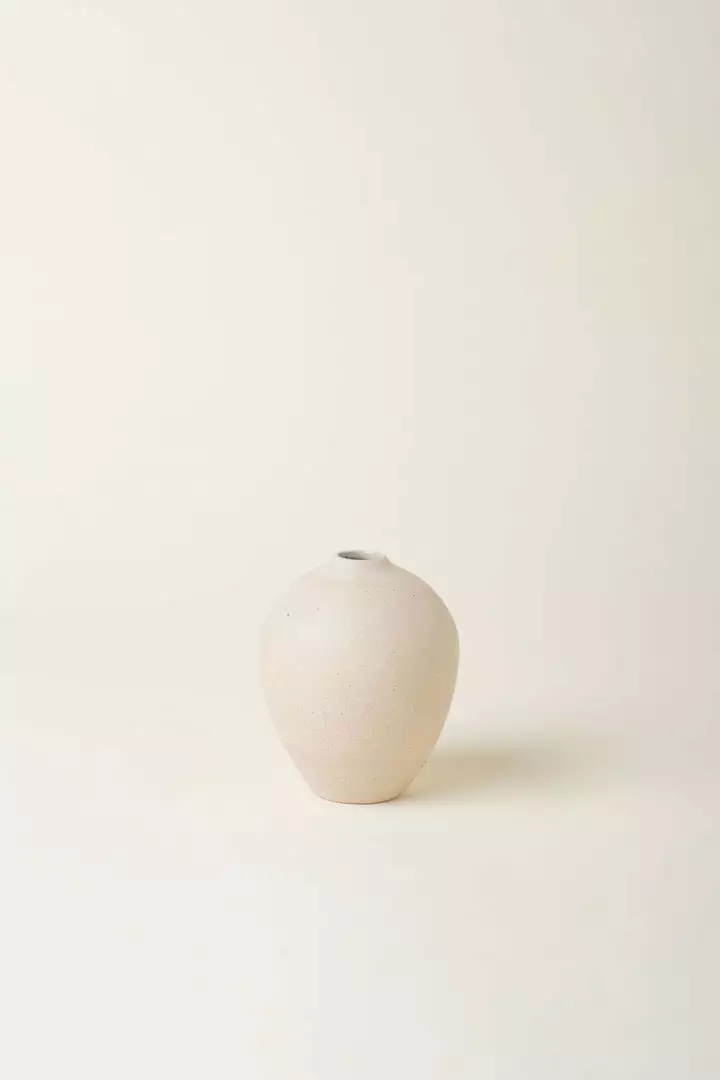 Inspired by minimalist style, finished with an earthy sand finish. This ceramic bud vase is influenced by organic shapes and Wabi Sabi living with its matte porous finish.