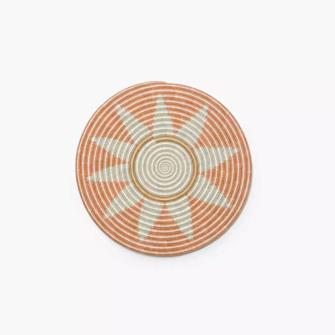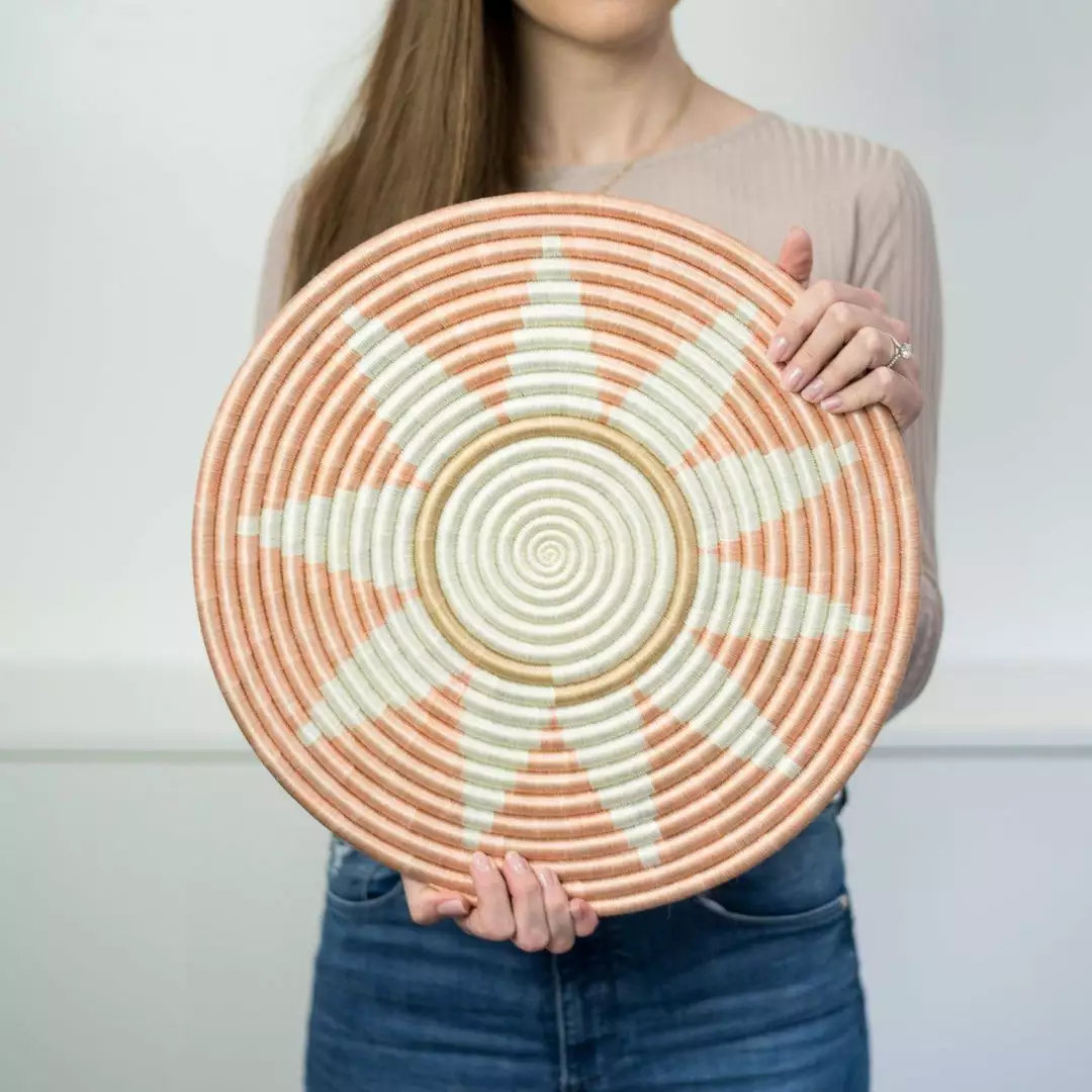 Named after the Kinyarwanda word for sun, the Zuba Flat will bring a ray of light into your home with its warm blush tone. Flats not only make striking wall hangings on their own, they also add interesting dimension to your gallery walls, and look great as a table centerpiece.
