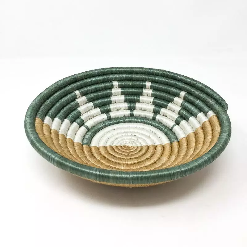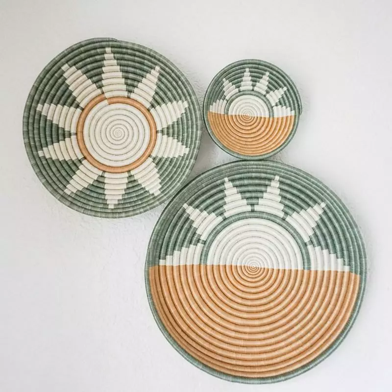 This curated set of three handwoven decorative bowls is inspired by the phases of the sun. This set makes it easy to add texture and color to your space and will easily fit in with your sustainable home decor. Hang them together as a micro wall collage, or use them as versatile decorative bowls and trays throughout your home.