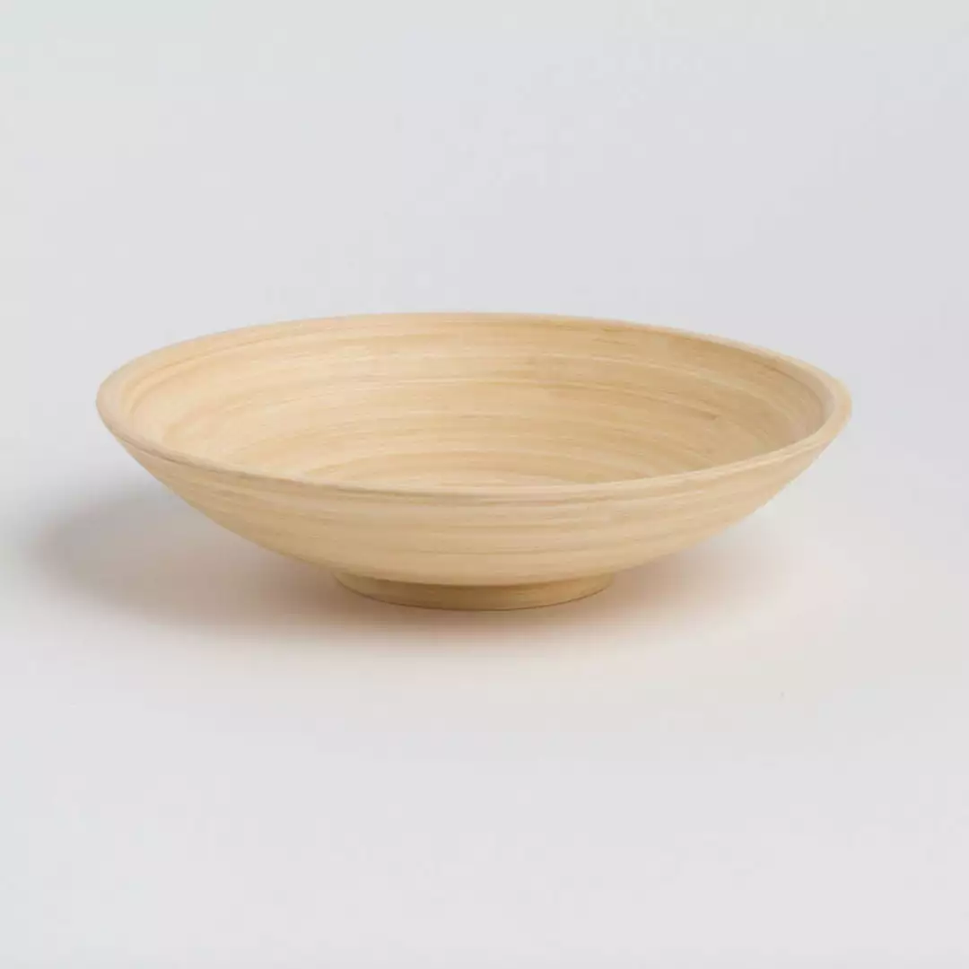 The Dia Bamboo Deep Plate is a small plate with higher sides, making it ideal for clean food presentations as well as everyday meals. Bamboo is insulating and suitable for both hot and cold foods. This clean, classic design will fit in with a range of decor styles, elevating your tablescapes and snack trays.