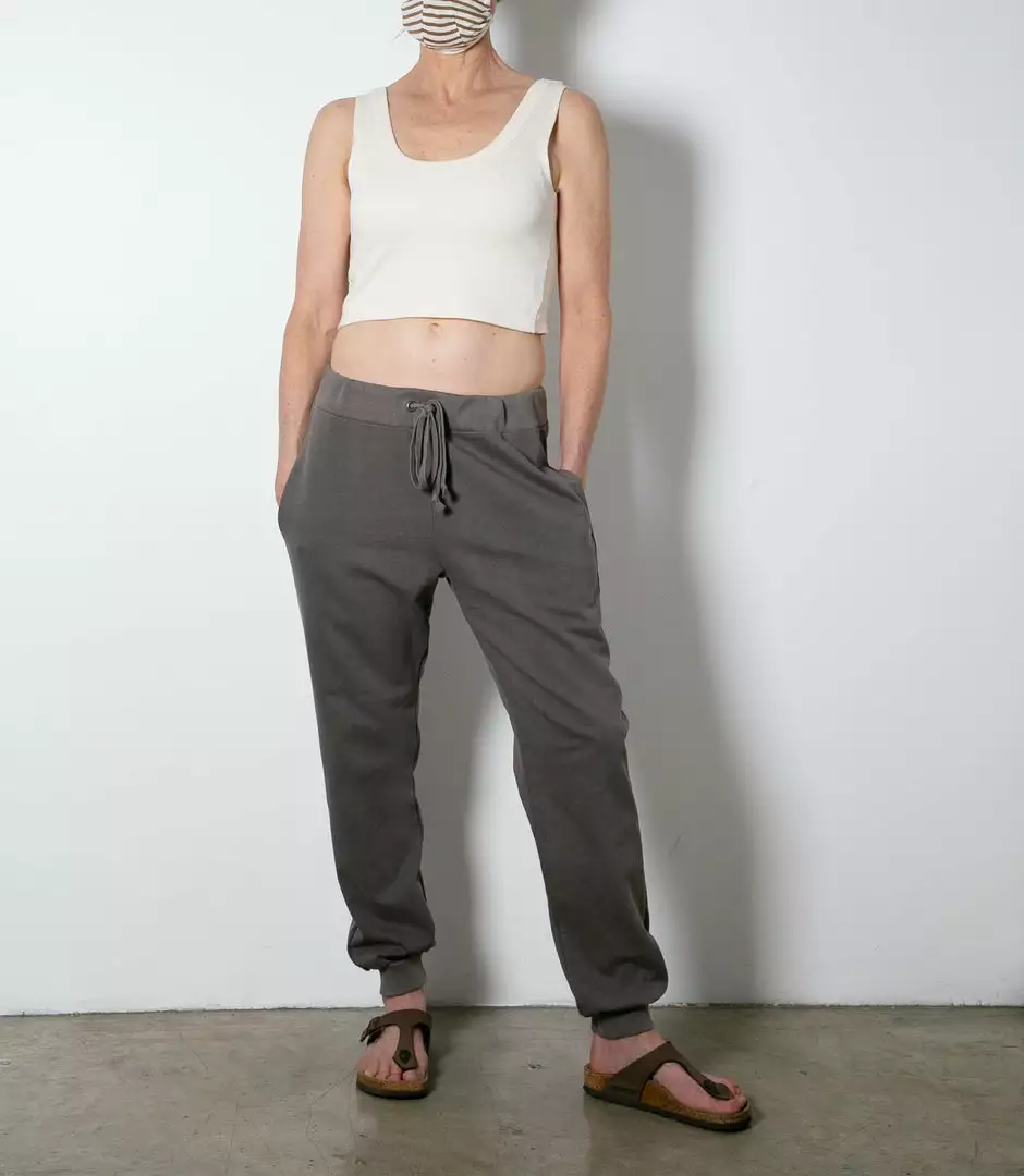 Relaxed fit jogger with pockets hidden at side seam and classic cuff at ankle. Runs large and fits a unisex size range. For a leaner option, try the sweatpants.