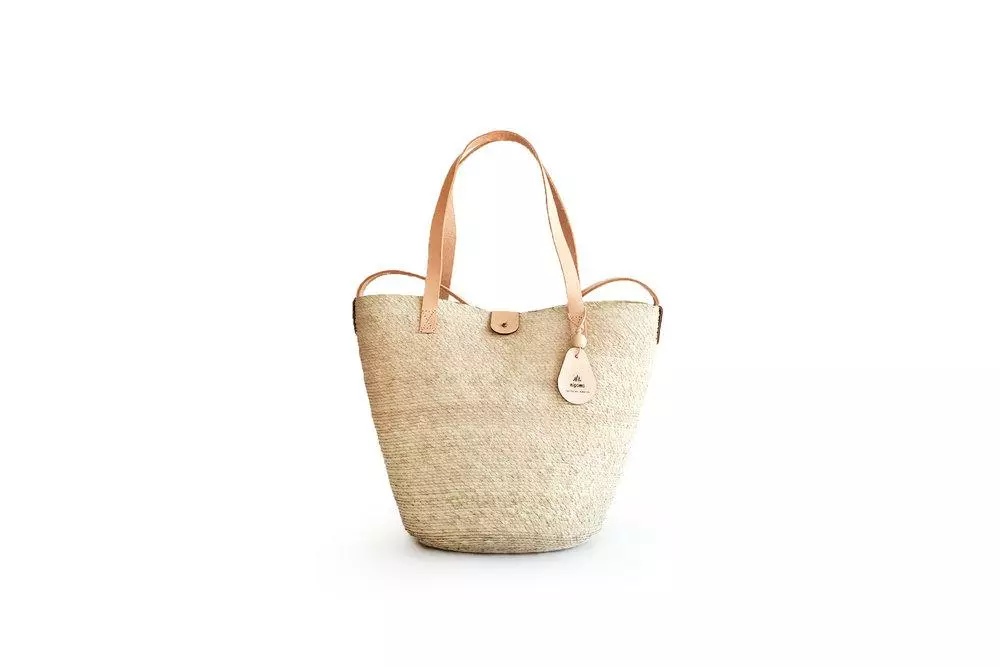 The Mercado basket is the perfect everyday purse with its crossbody shoulder strap and leather tote handles. It features a velcro closure. Please note basket and leather straps are hand made and colors will vary.