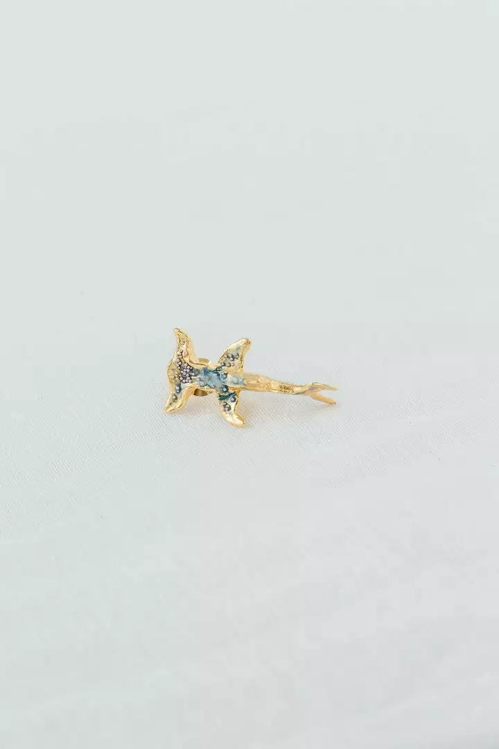 This unique brooch is inspired by the colors and textures of the ocean. Add a bit of shine to any outfit with this handcrafted, responsibly sourced piece. The hammerhead shark has a T-shaped head causing his eyes to look in different directions. He can see what’s going on around him without having to turn.