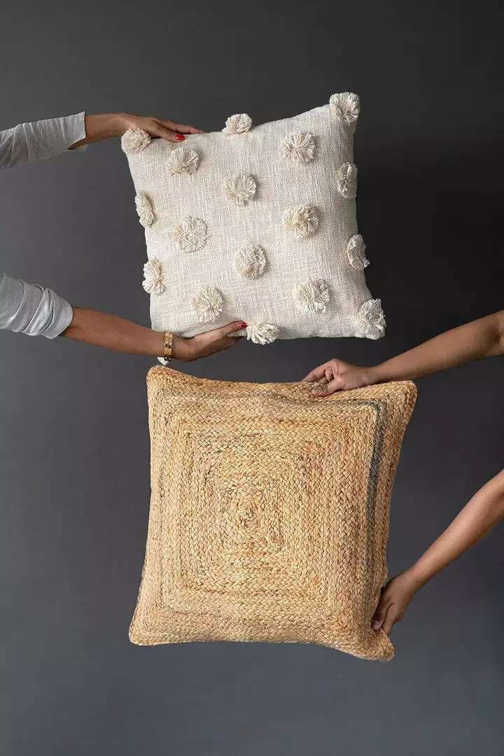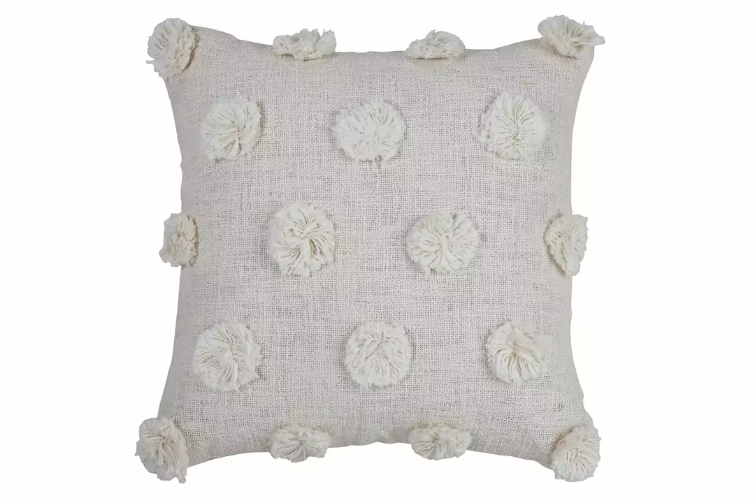 The Mia Pom-Pom Accent Pillow is perfectly playful, with hand-tufted pom-poms on soft cotton slub fabric. The design adds a dose of cheer to any space, no matter where you place it. A neutral hue gives you the versatility to style this pillow for any season: pair it with colorful pillows for the holidays or burnt oranges and browns for the fall.