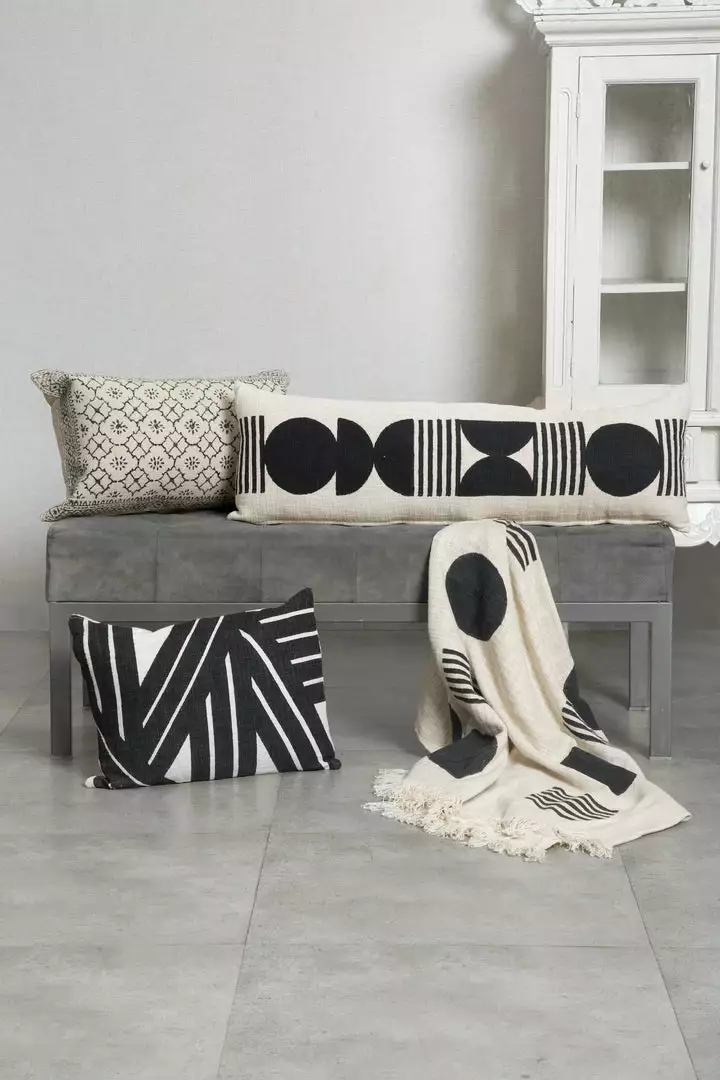 The Noir Celestial Lumbar Pillow is handprinted using blocks by master artisans, you can be assured of the level of quality and care that goes into the design. The artisans use traditional hand block printing techniques to bring you neutral, modern design to match any decor.