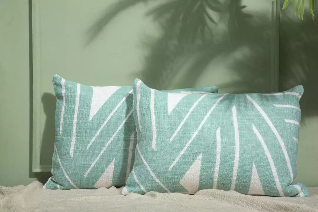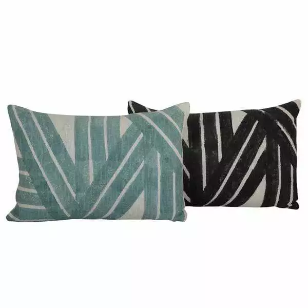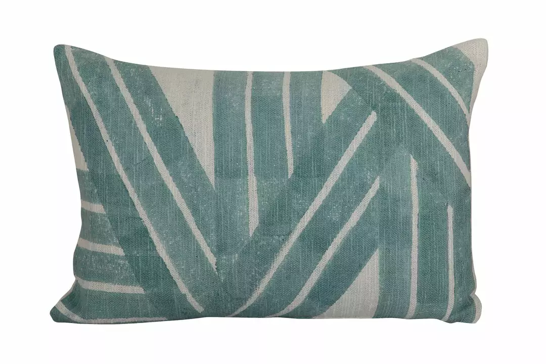 The Stripe Sky lumbar pillow features a hand block printed design to add a bold pop of texture and pattern to your favorite sitting areas.