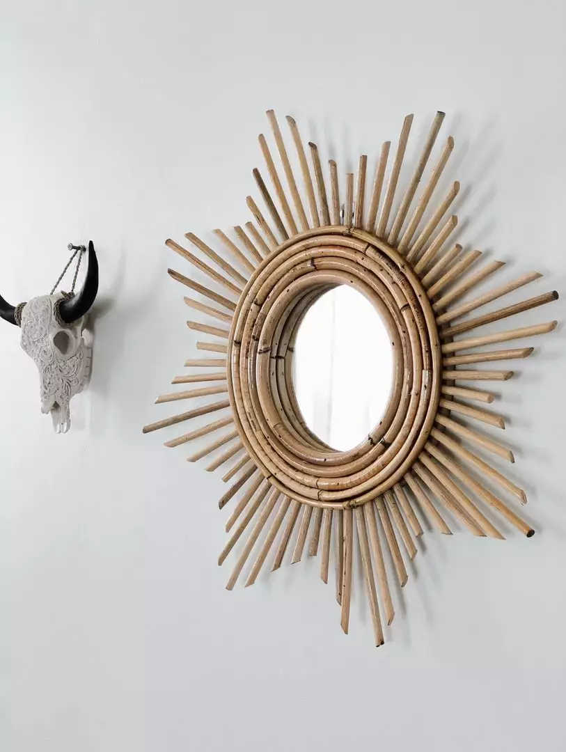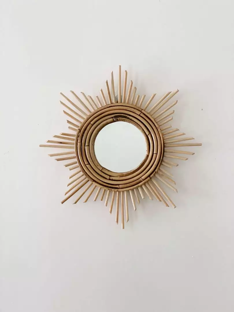 This Mini “Matahari” (sun) Mirror is a splendid addition to any space. It’s perfect for an entryway, bedroom, hallway, or bathroom. layer it with other natural materials for a true bohemian feel. This mirror is durable and will bring light into your home for years to come. Due to the handmade nature of this piece and the materials used, slight variations may occur.