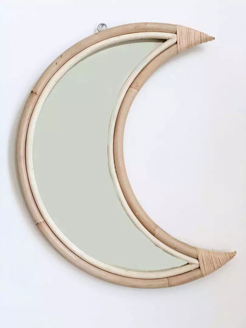 Ceremonia’s new moon mirror is handmade using rattan–a sustainable vine-like tree that grows abundantly from the ground up throughout most of Indonesia. Their artisan partners work with their families to harvest the rattan when it’s ready, then they wash and clean it in the river, and finally smoke it to give it the yellowish/brown hue. Once the material is ready, they burn it at high temperatures to weld into our mirror designs. Due to the handmade nature of this piece and materials used, slight variations may occur.