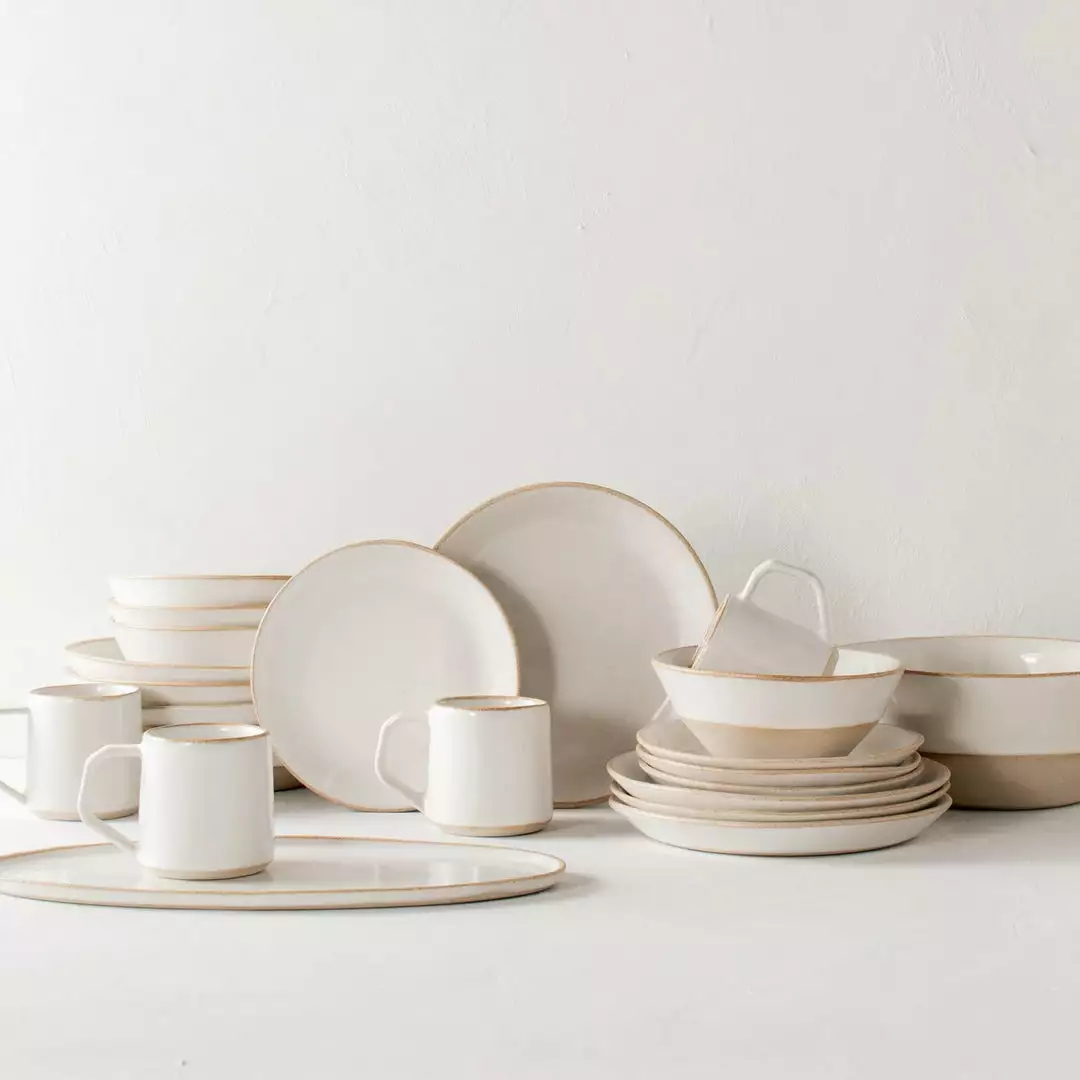 Each piece is made by hand with Convivial’s proprietary sand clay and finished in their signature ivory glaze.