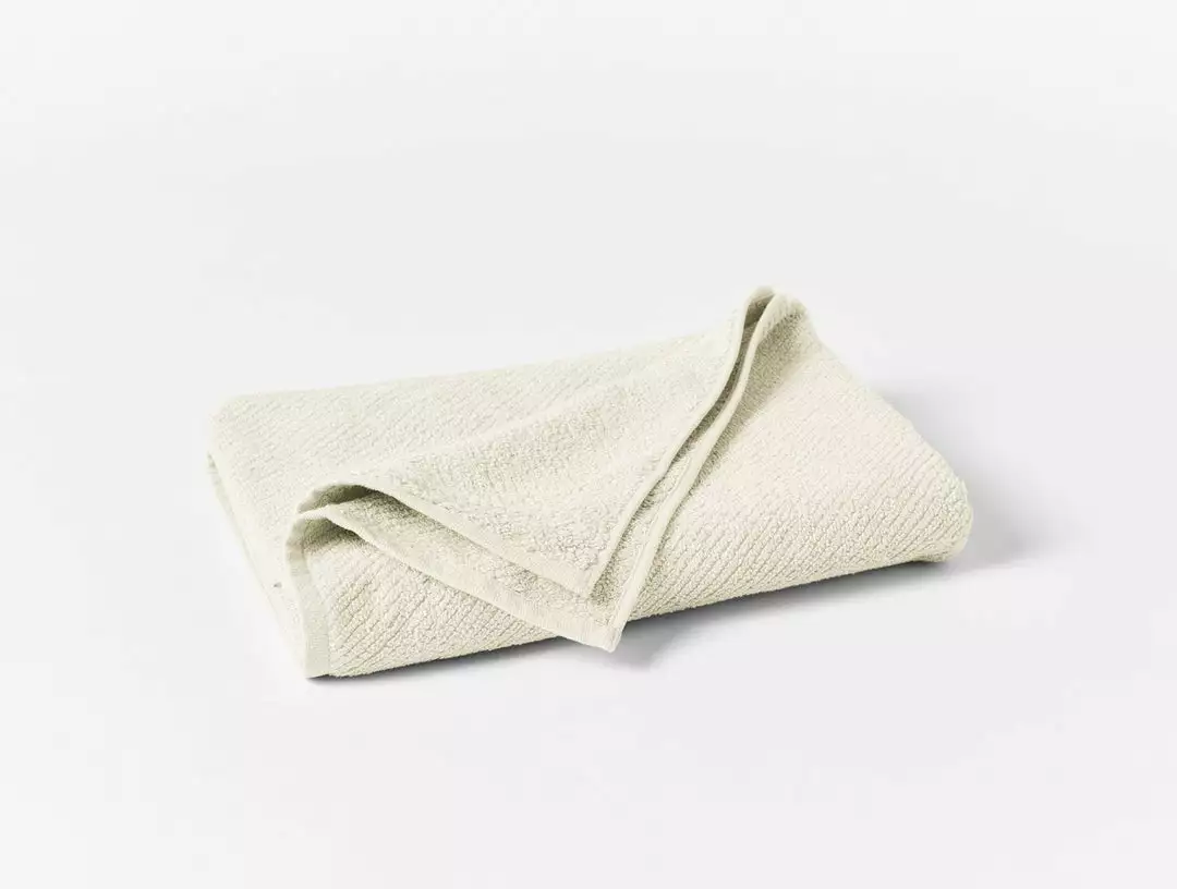 Hand towels traditionally hang from a bar or hook, while guest towels (also called “fingertip towels”), are smaller and tend to be displayed on the countertop.