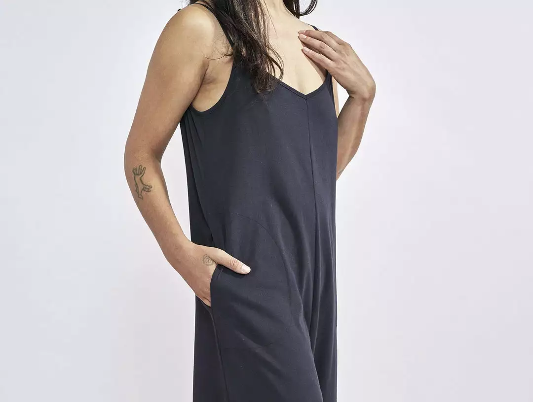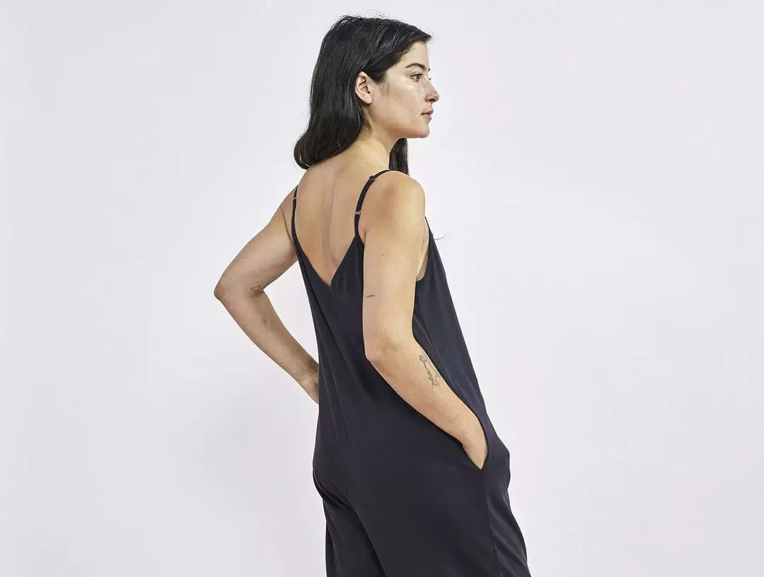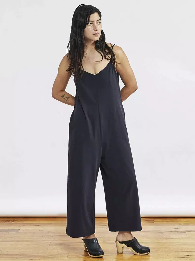 Pure and breathable, the Solstice peached organic cotton jersey feels irresistibly soft against your skin. Ultra-comfy for lounging or sleeping, the romper’s silhouette is flattering for a range of body types, with a wide, cropped leg, adjustable shoulder straps, and a gentle V neck and back. Side pockets are topstitched to stay in place. Made in a factory that recycles 98% of its wastewater.
