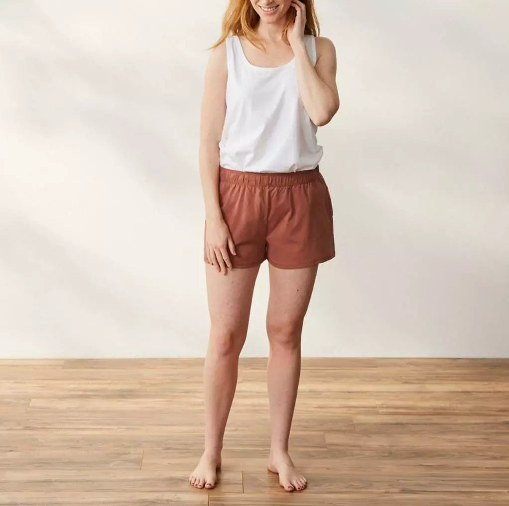 Peached organic cotton jersey makes these shorts feel irresistibly soft against your skin. The relaxed fit is perfect for lounging, with a flat elastic waistband that’s stitched so it won’t roll or flip. Inseam Length: XS: 2.7″, S: 2.8″, M: 3″, L: 3.1″. Made Safe and Fair Trade certified.