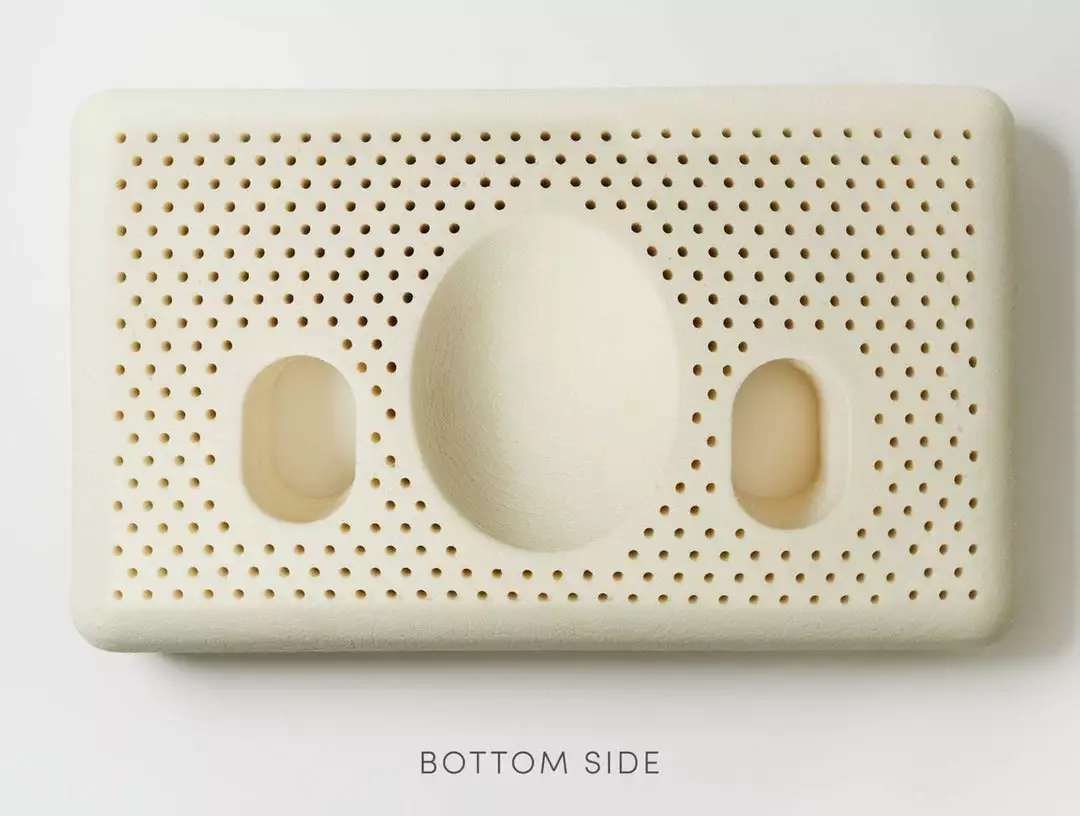The pillow has one unique indentation on the underside, allowing your head to relax back while your neck is firmly supported. This position keeps your airways open, alleviates pressure on your face and ears, and relaxes some of the postural discomforts from smartphone and computer use.
