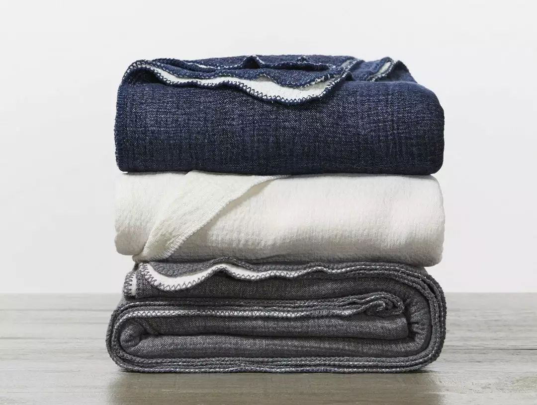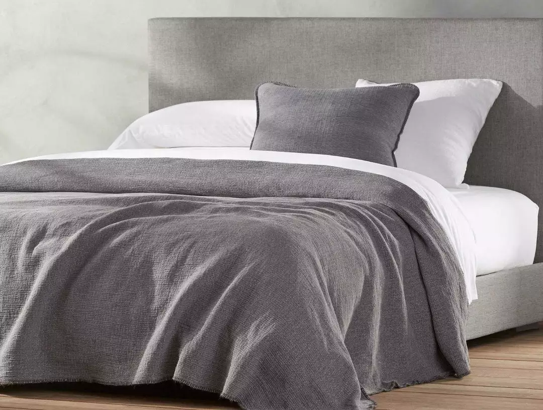 Naturally luxurious, Coyuchi’s blanket pairs the plush touch of chenille and the lightweight warmth of cotton. Coyuchi washed it to create a subtly puckered texture. Each color reverses to white, offering two ways to layer. All of Coyuchi’s organic cotton products are machine washable.