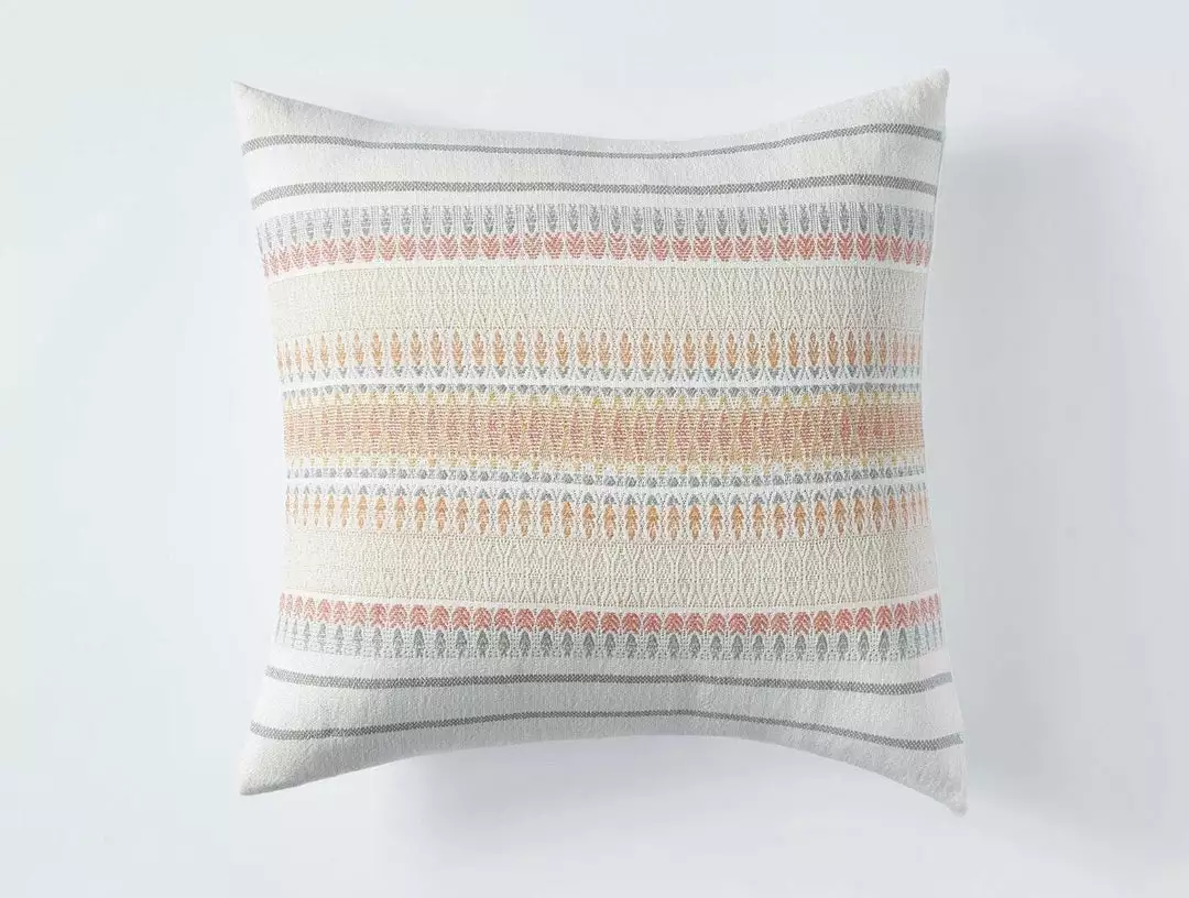 Inspired by the colors and textures of the place where land and water meet, this pillow is woven with detailed dobby stripes in mellow, sun-washed hues. The soft, substantial organic cotton cover reverses to smooth percale with an envelope closure. Hand or machine wash the cover in cold water on the gentle or delicate cycle. Hang dry.