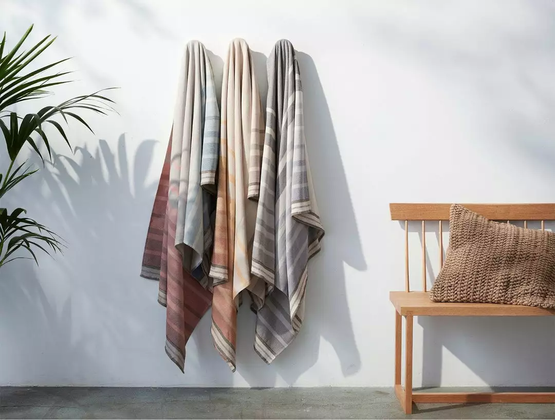 Inspired by the striped sarape blankets of Mexico, this yarn-dyed organic cotton beach towel mimics the line of the horizon with an ombre pattern that transitions from bright color on top to more subdued neutrals along the bottom. Flat weave surface with an undyed mini-loop terry back that’s soft, highly absorbent, and quick to dry. Edges are detailed with a yarn-dyed stripe.