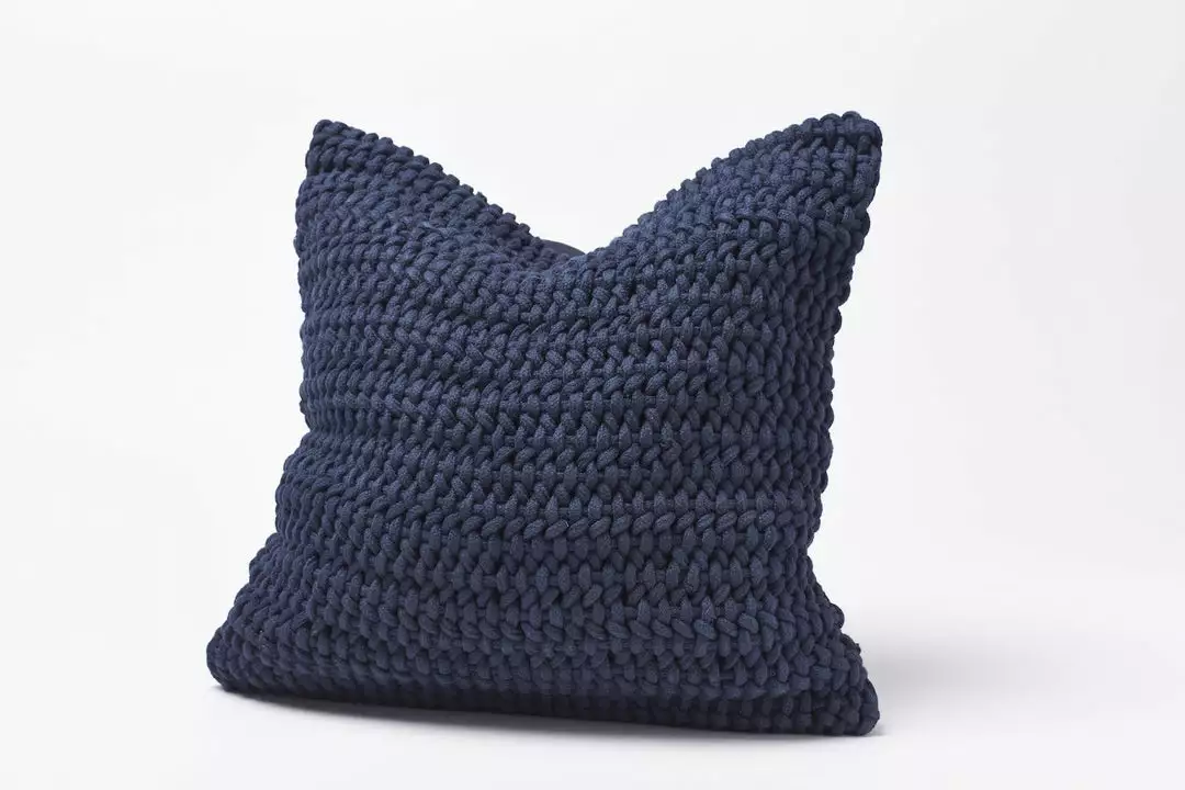 Extra-thick coarse cotton yarns are loomed in a Leno weave—in which double warp threads are twisted around the weft—to create the chunky texture that gives this solid-colored pillow a lively sense of pattern. Substantial and soft, it’s a standout on its own or layered.